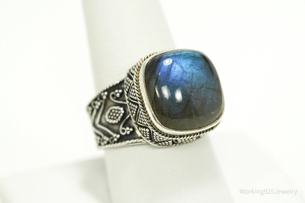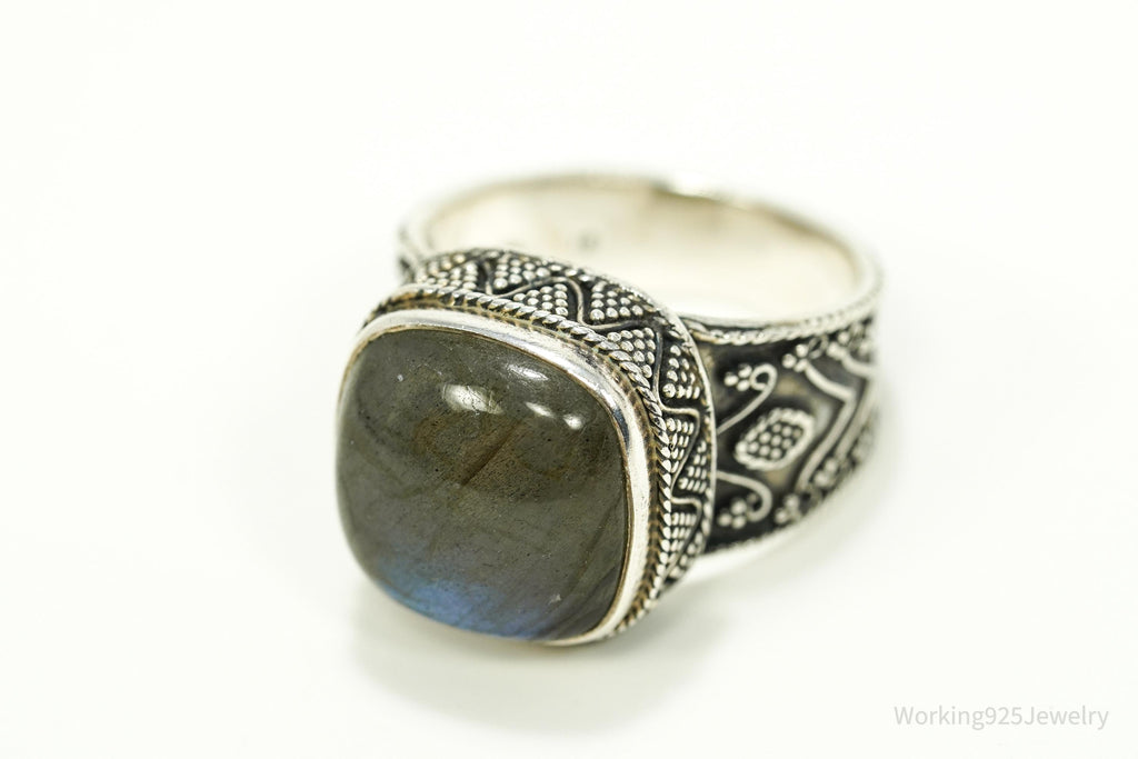 Vintage Large Labradorite Ornate Sterling Silver Ring - SZ 10.25