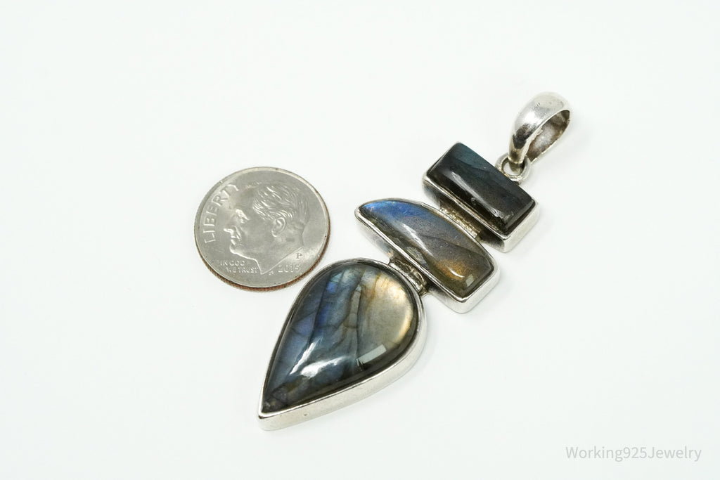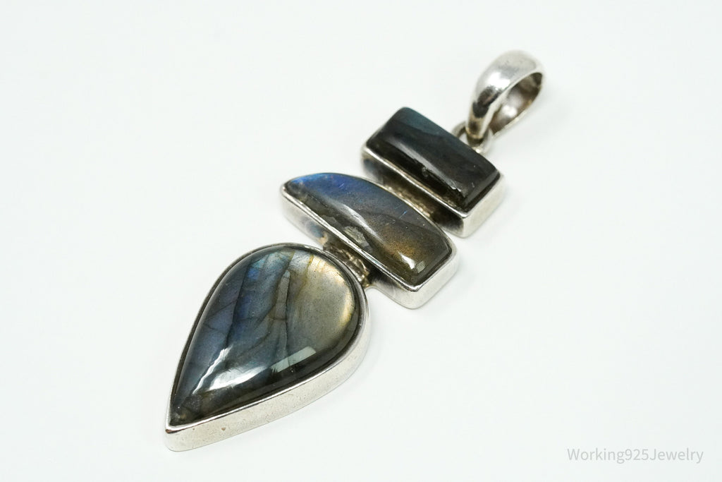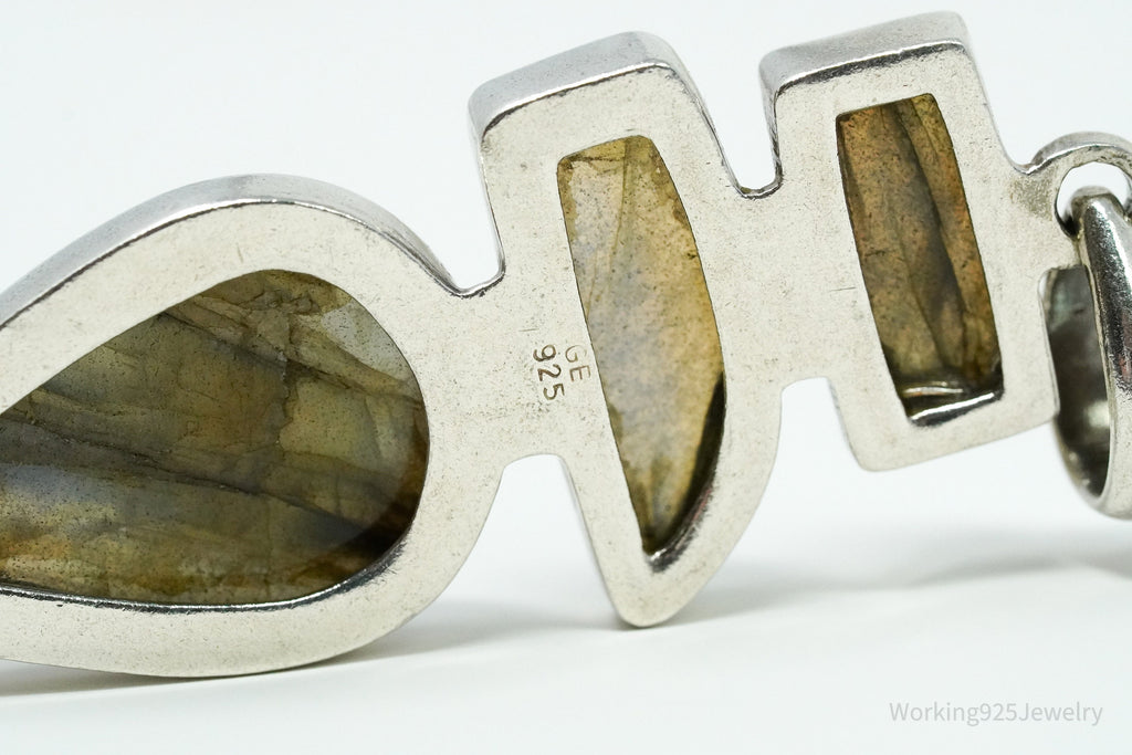 Vintage Large Labradorite Sterling Silver Necklace Pendant