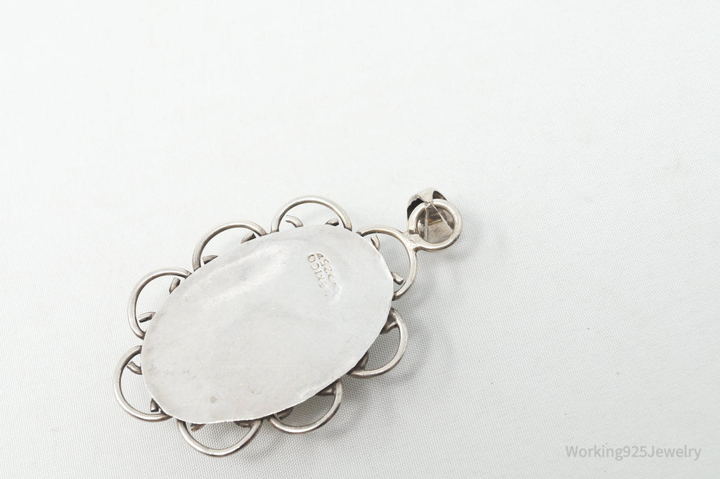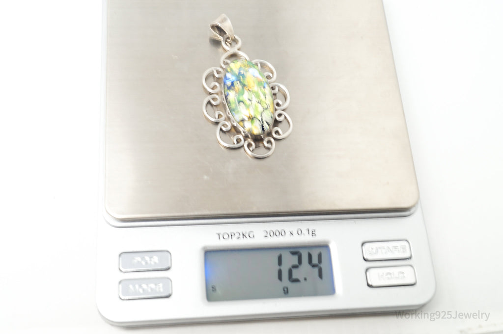 Vintage Large Mexico Dichroic Glass Flower Sterling Silver Necklace Pendant