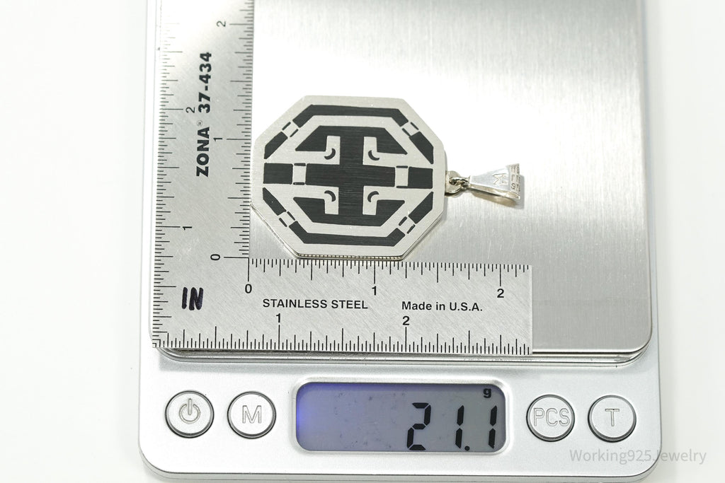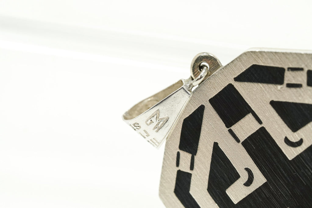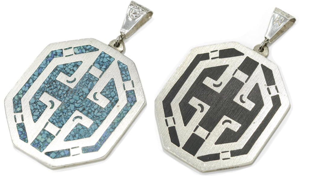 Vintage Large Mexico Modernist Reversible Turquoise & Black Onyx Sterling Silver Pendant 2 3/16"