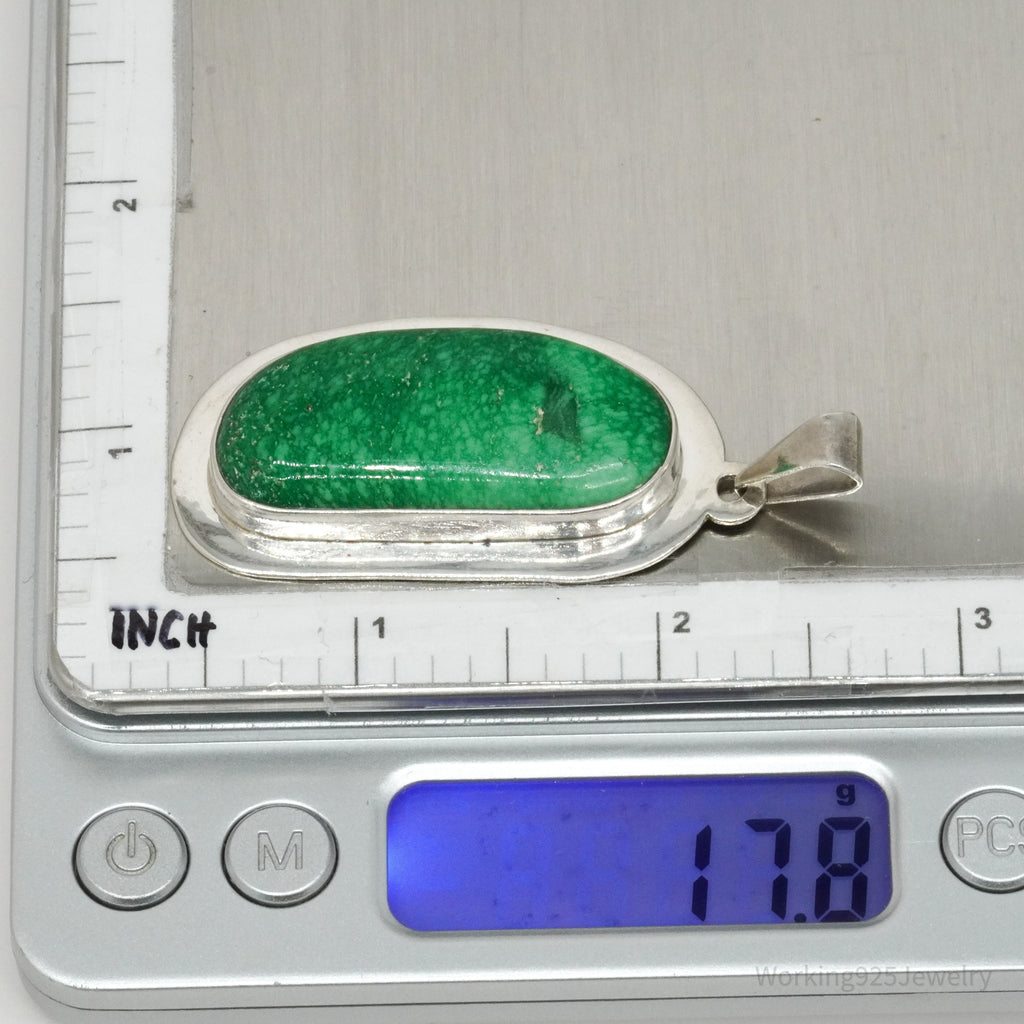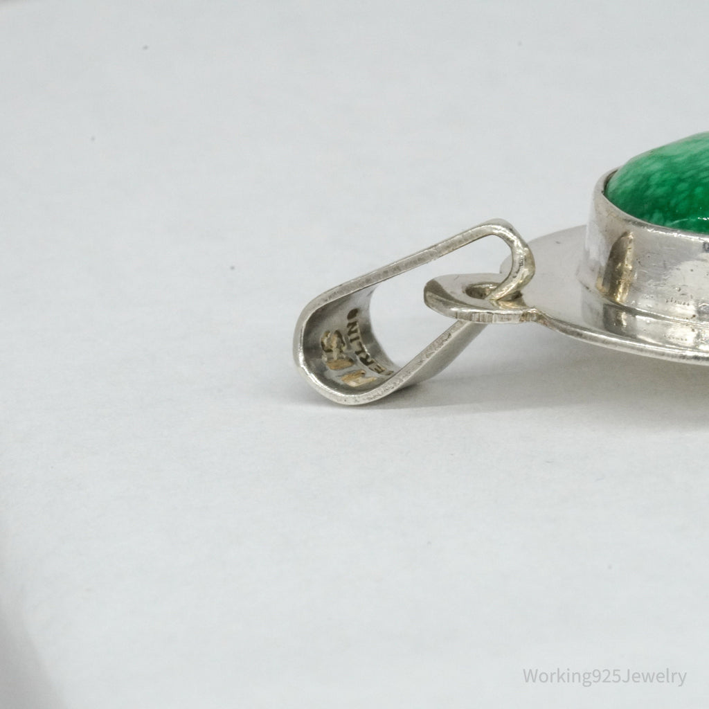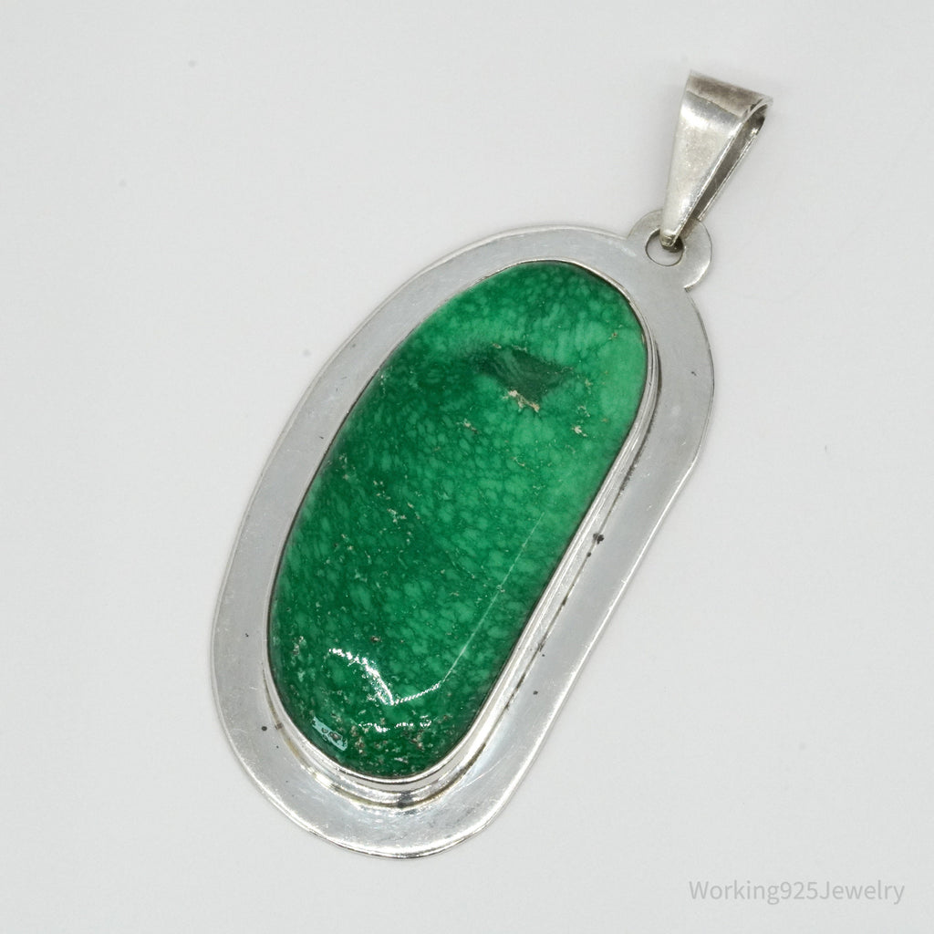 Vintage Large Mexico Modernist AIS Green Stone Sterling Silver Pendant 2 5/16"