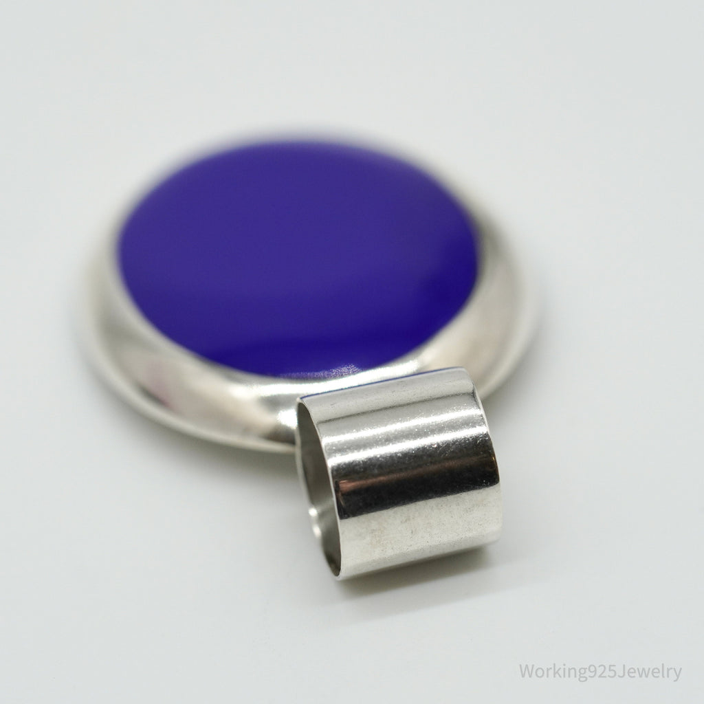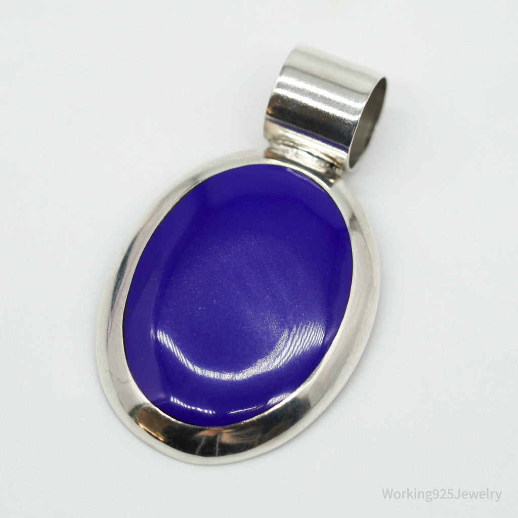 Vintage Large Mexico Modernist Blue Onyx Sterling Silver Pendant