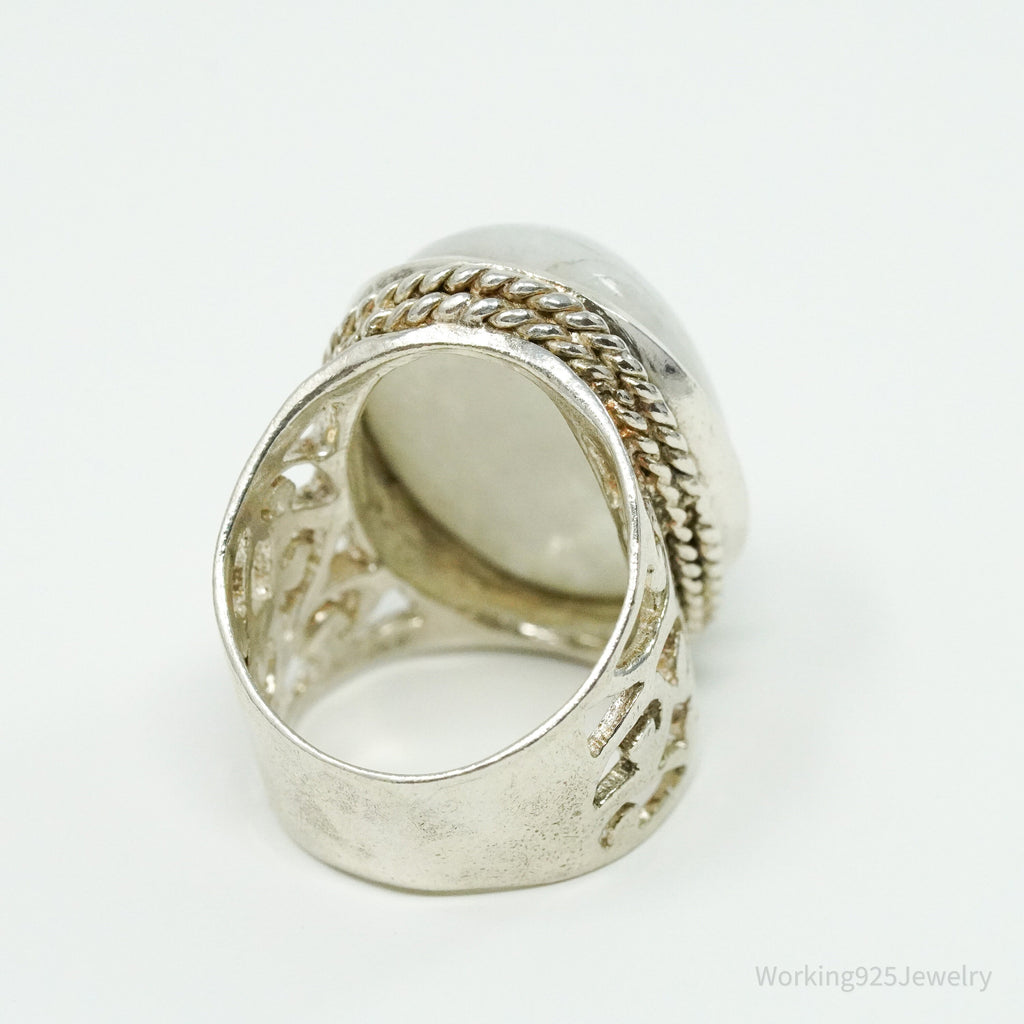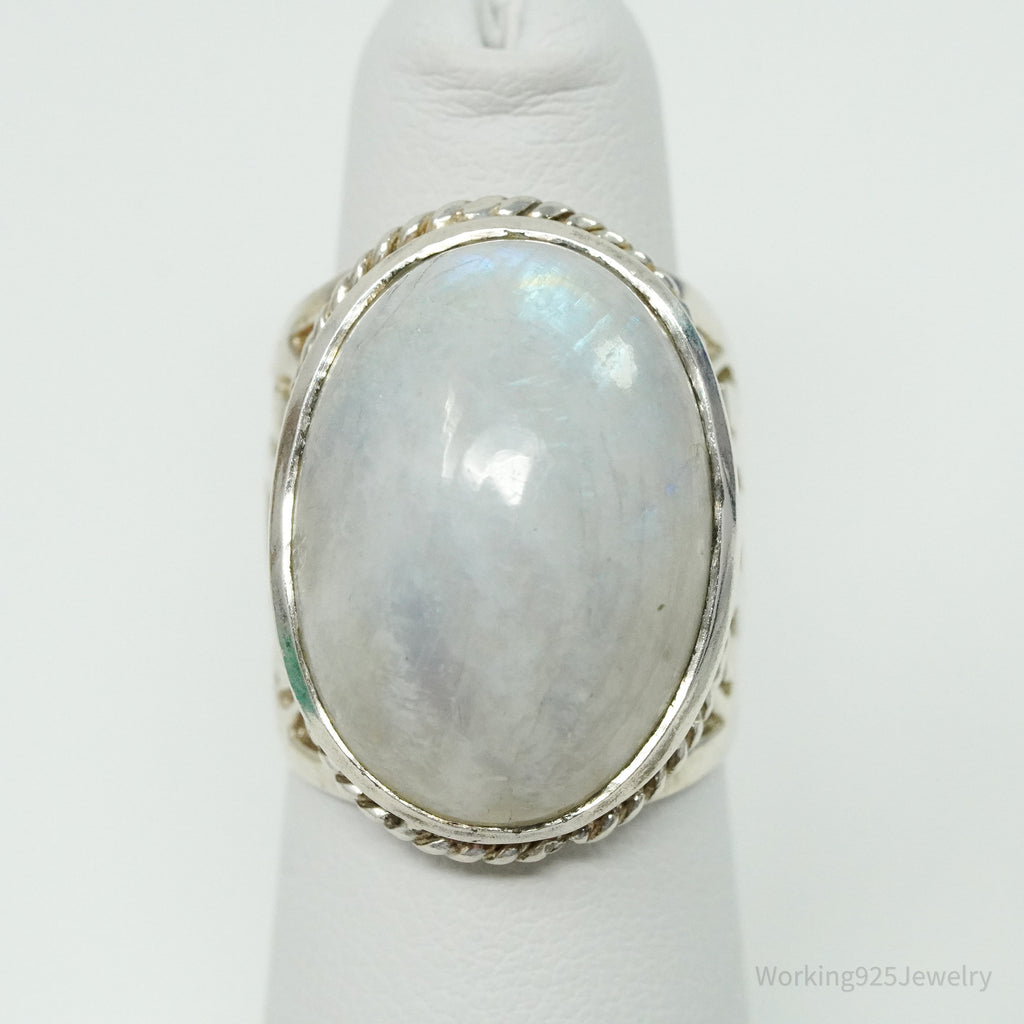 Vintage Large Moonstone Sterling Silver Ring - Size 5.75
