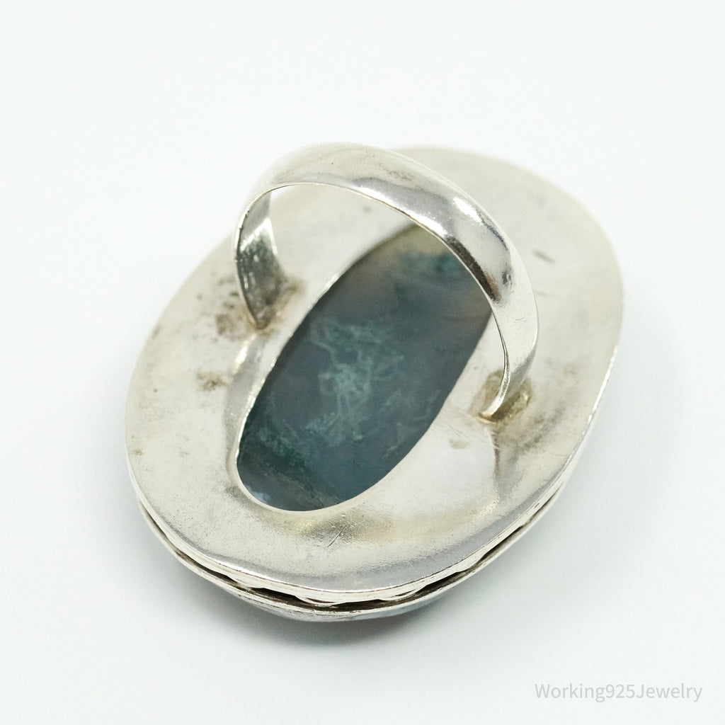 Vintage Large Moss Agate Sterling Silver Ring - Size 7.5