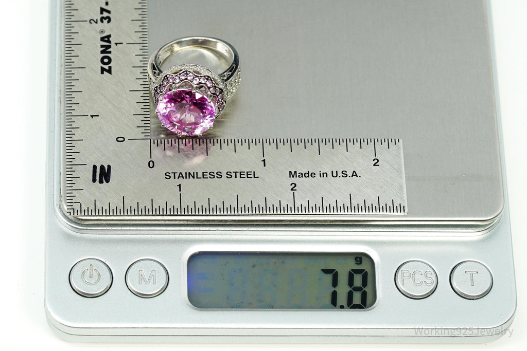 Vintage Large Pink & White Sapphire Sterling Silver Ring - Size 6.5