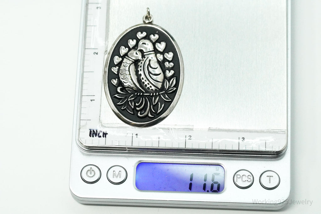 Vintage Large Puffy Birds International Sterling Silver Tree Ornament Pendant