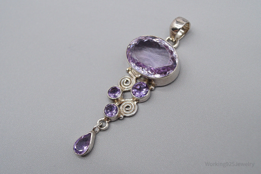 Vintage Large Purple Amethyst Sterling Silver Necklace Pendant