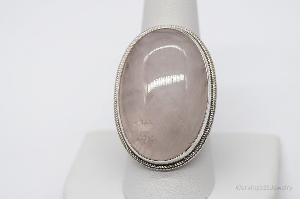 Vintage Large Rose Quartz Sterling Silver Ring - Size 10