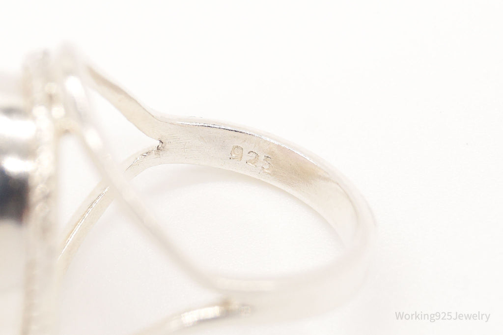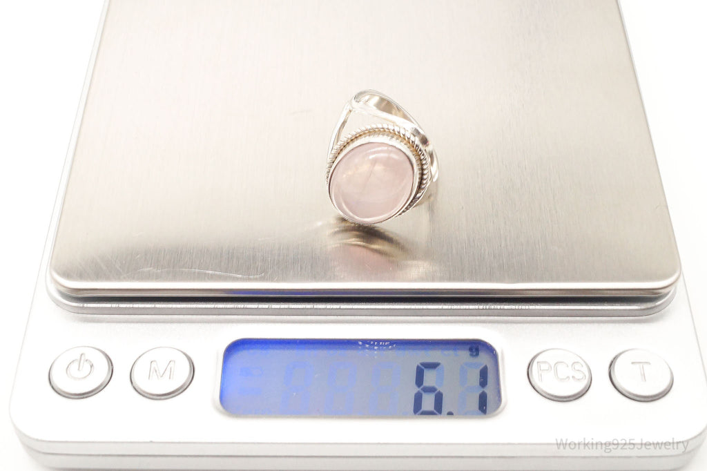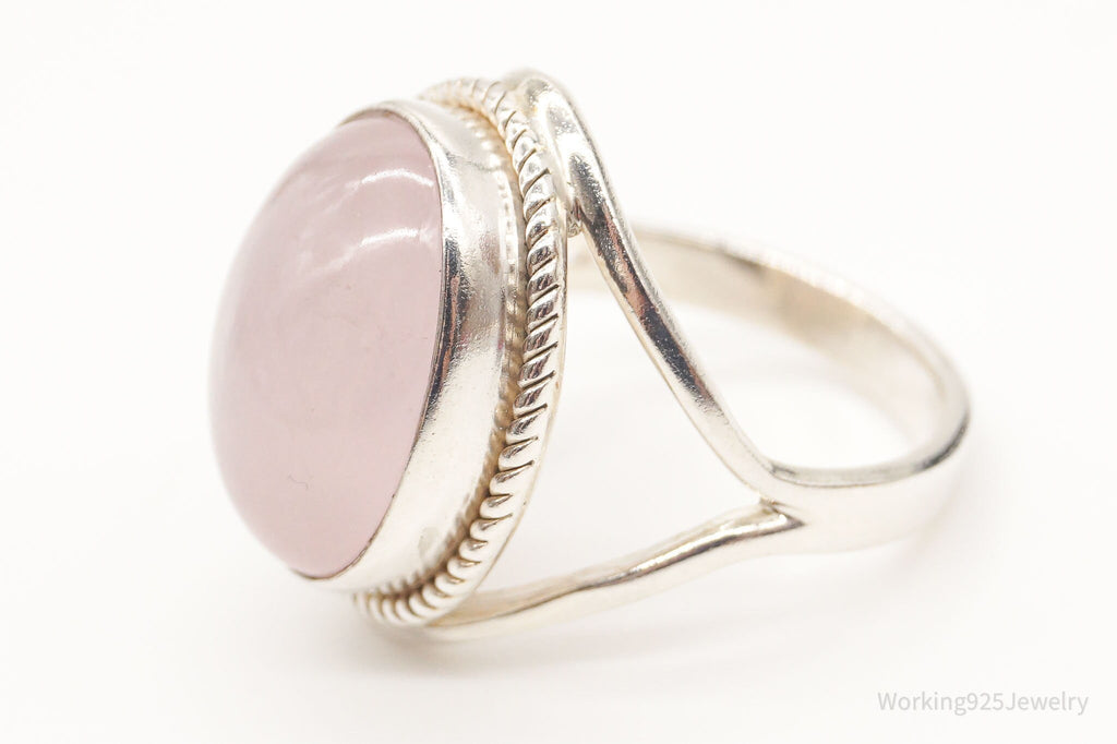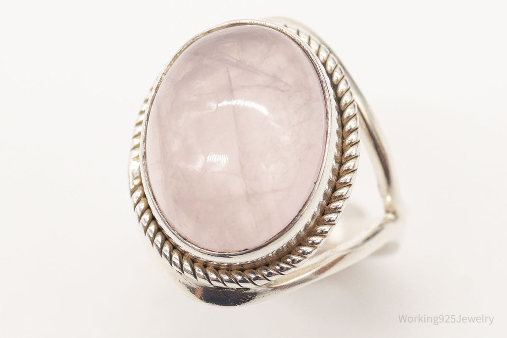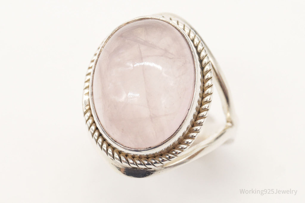 Vintage Large Rose Quartz Sterling Silver Ring - Size 6