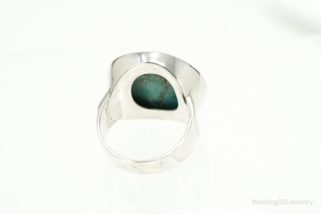 Vintage Large Turquoise Sterling Silver Ring - Size 8