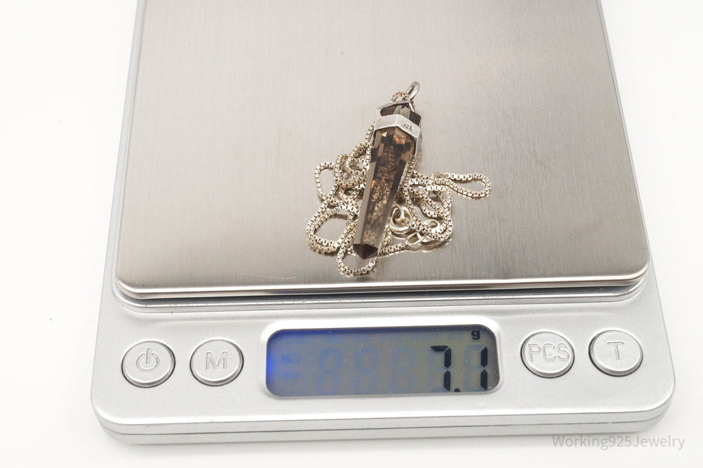 Vintage Large Smoky Topaz Sterling Silver Necklace
