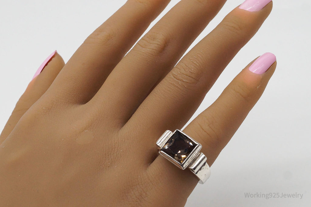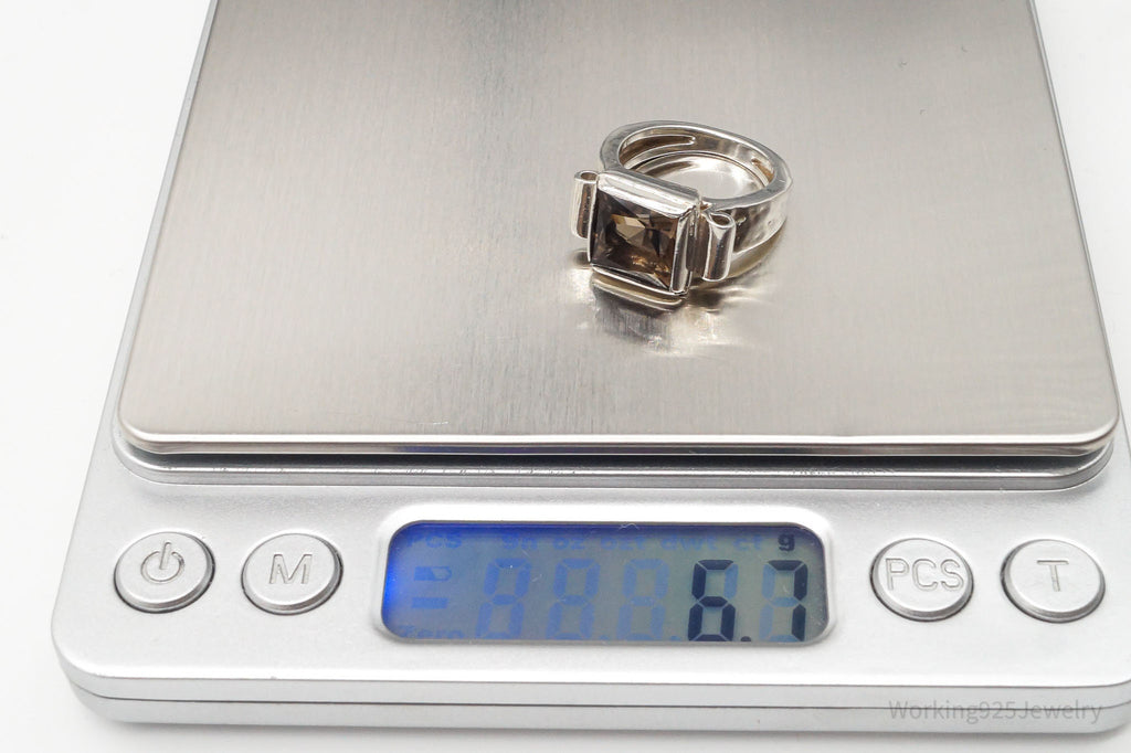 Vintage Large Smoky Topaz Sterling Silver Ring - Size 5.75