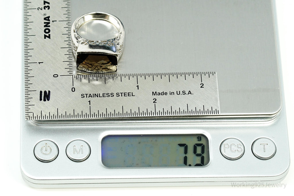 Vintage Large Smoky Topaz Sterling Silver Ring - Size 7.25