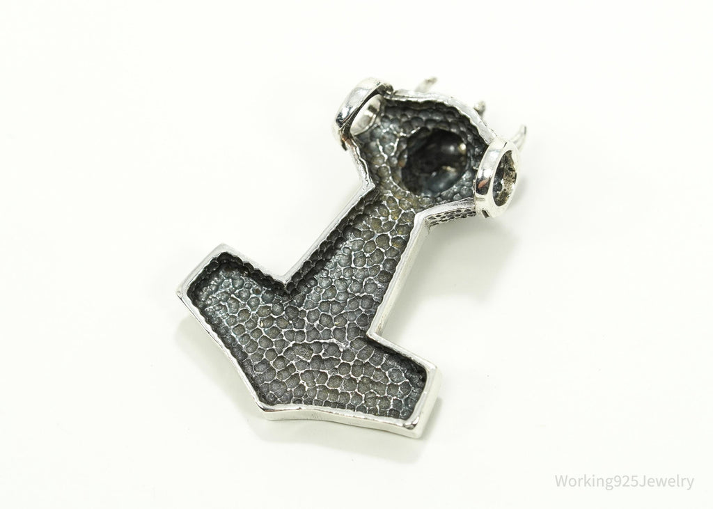 Vintage Large Thor's Hammer Sterling Silver Necklace Pendant