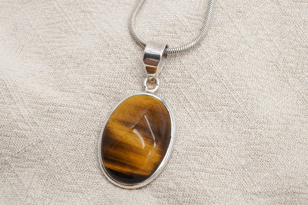 Vintage Large Tigers Eye Sterling Silver Necklace 16"