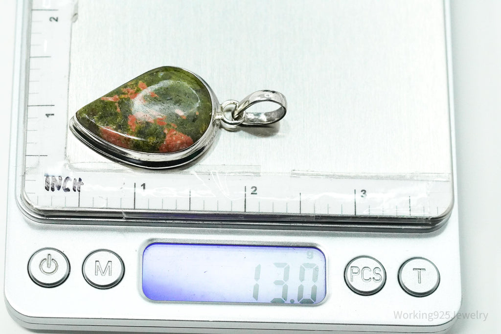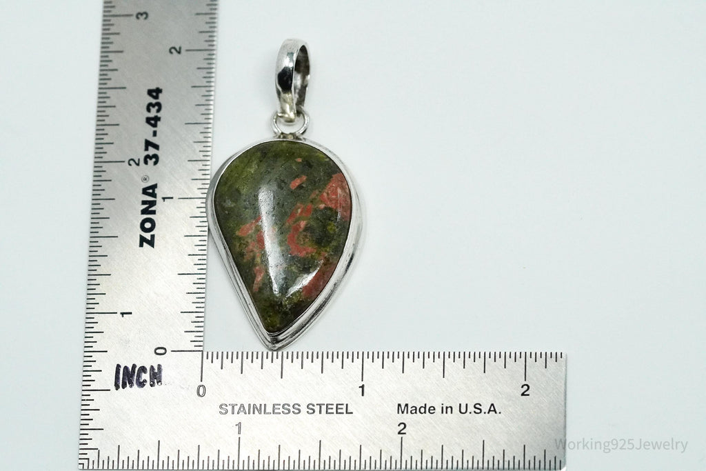 Vintage Large Unakite Sterling Silver Necklace Pendant