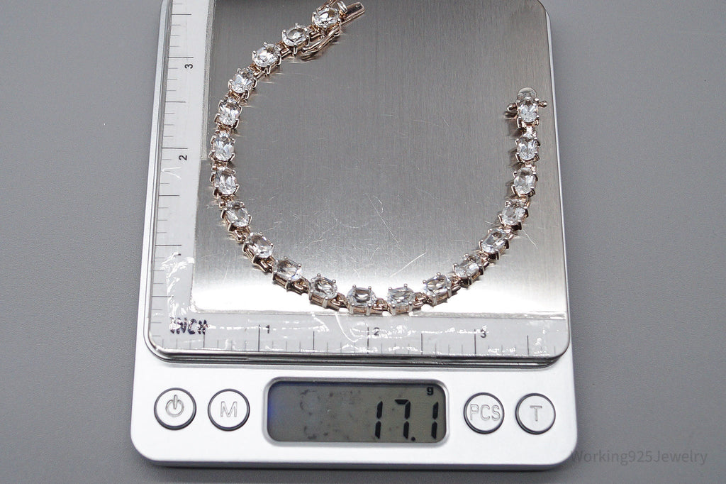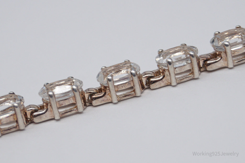Vintage Large White Topaz Sterling Silver Bracelet - 7 7/8"