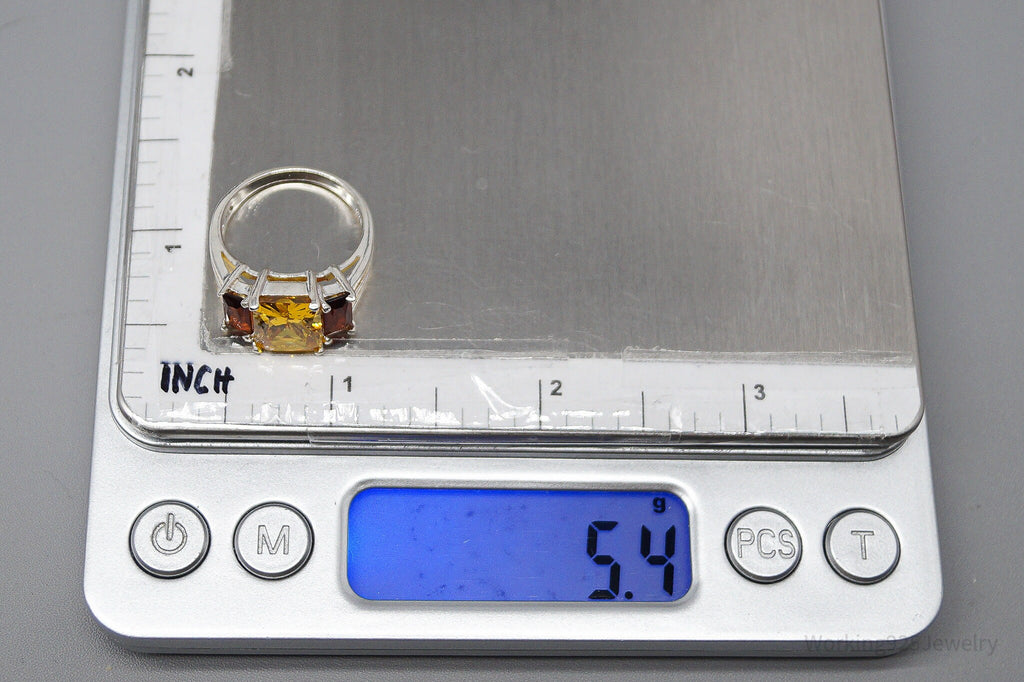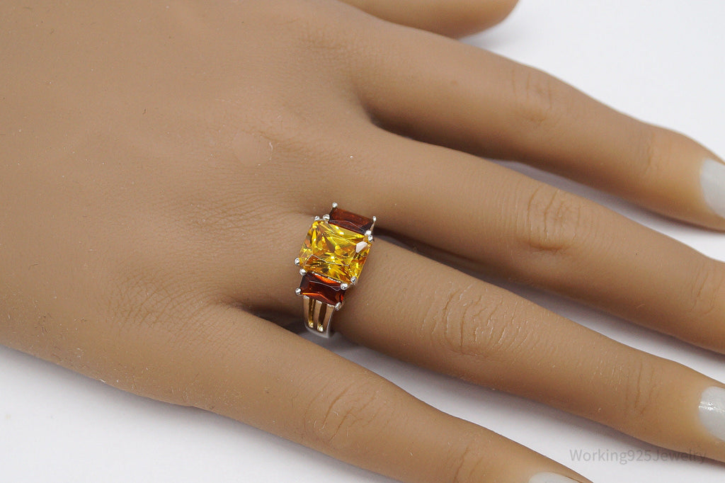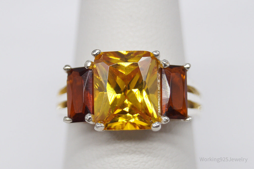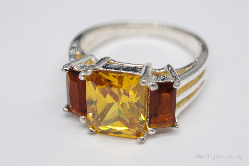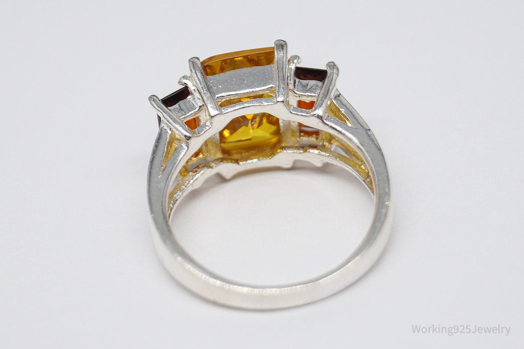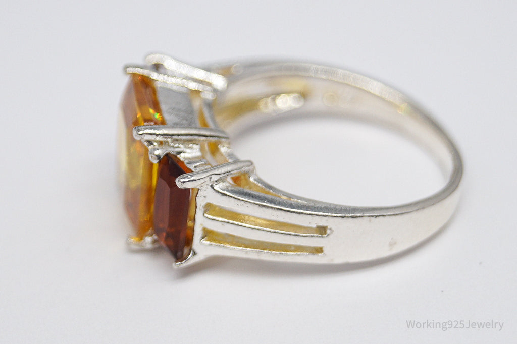 Vintage Large Yellow Tourmaline & Faux Amber Stone Sterling Silver Ring - Size 6.5