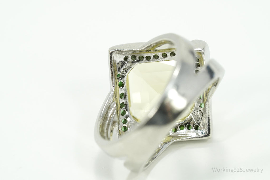 Vintage Lemon Citrine & Emerald Sterling Silver Ring Size 7