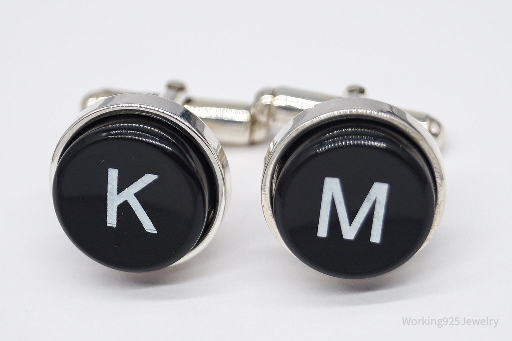 Vintage Letter Font Initials MK / KM Sterling Silver Cufflinks