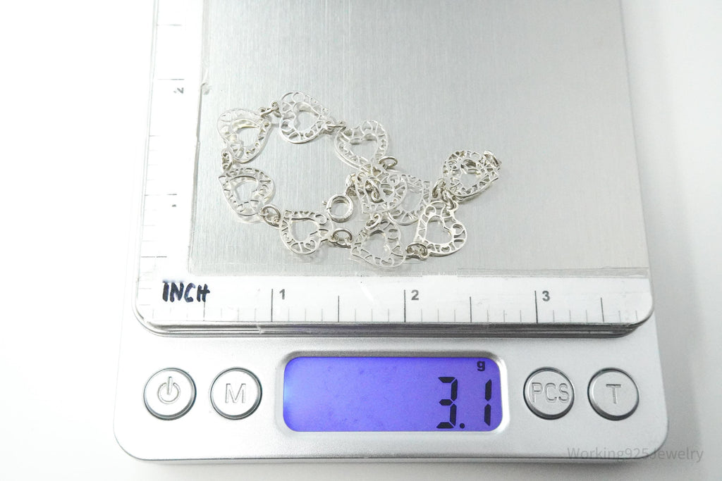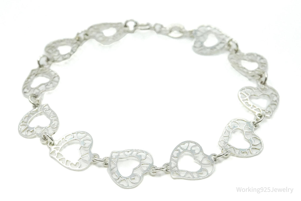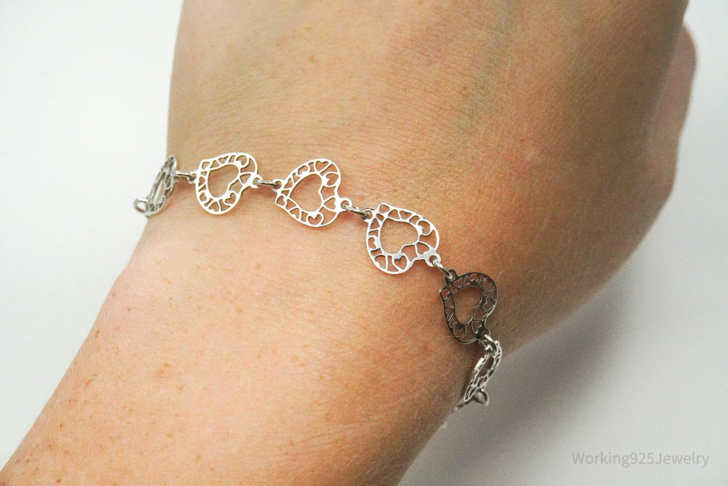 Vintage Linked Hearts Sterling Silver Bracelet 7.25"