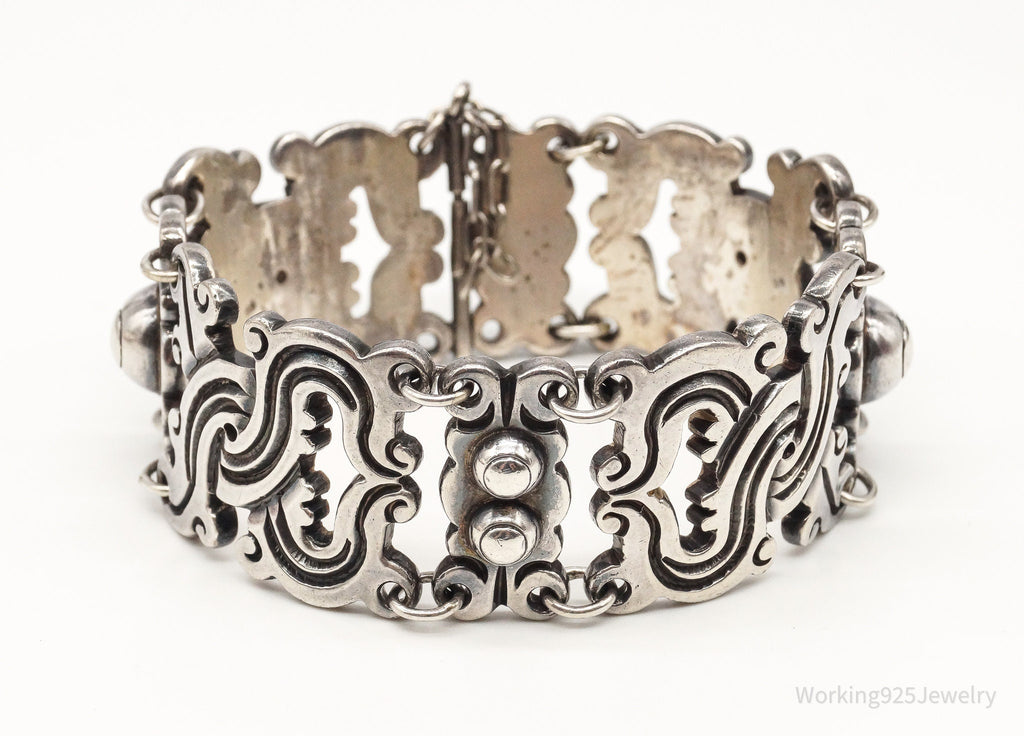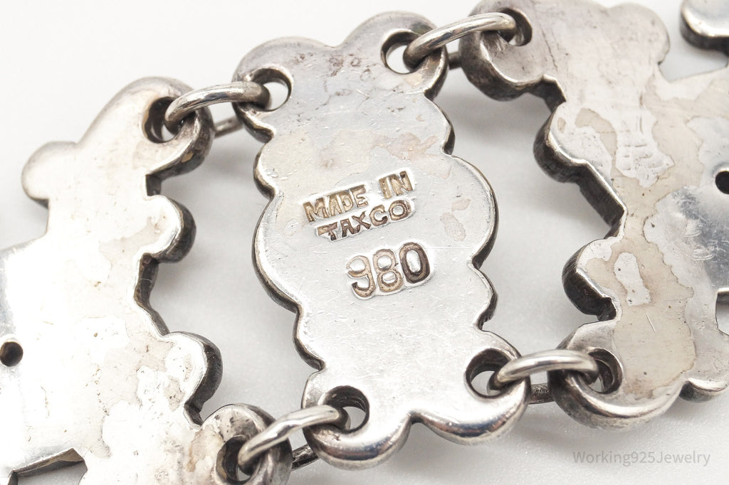Vintage Made In Taxco Modernist 980 Silver Panel Bracelet