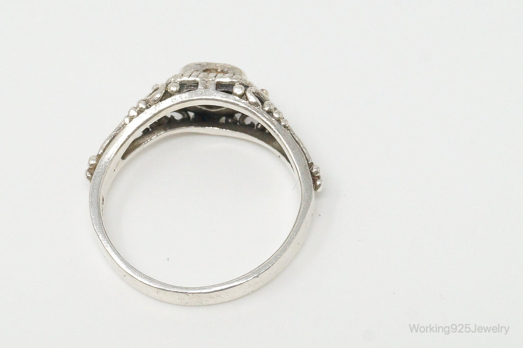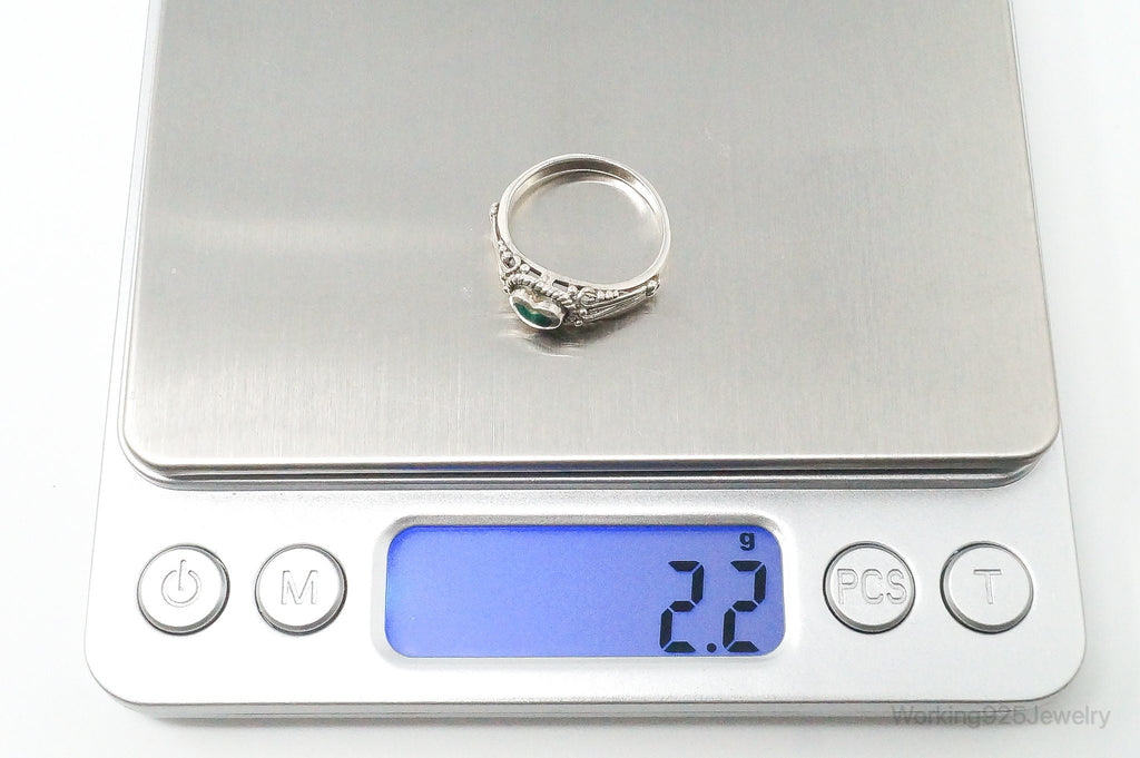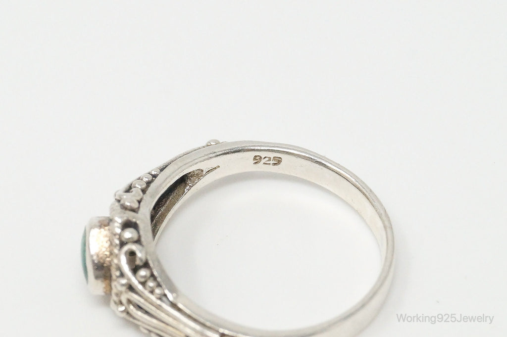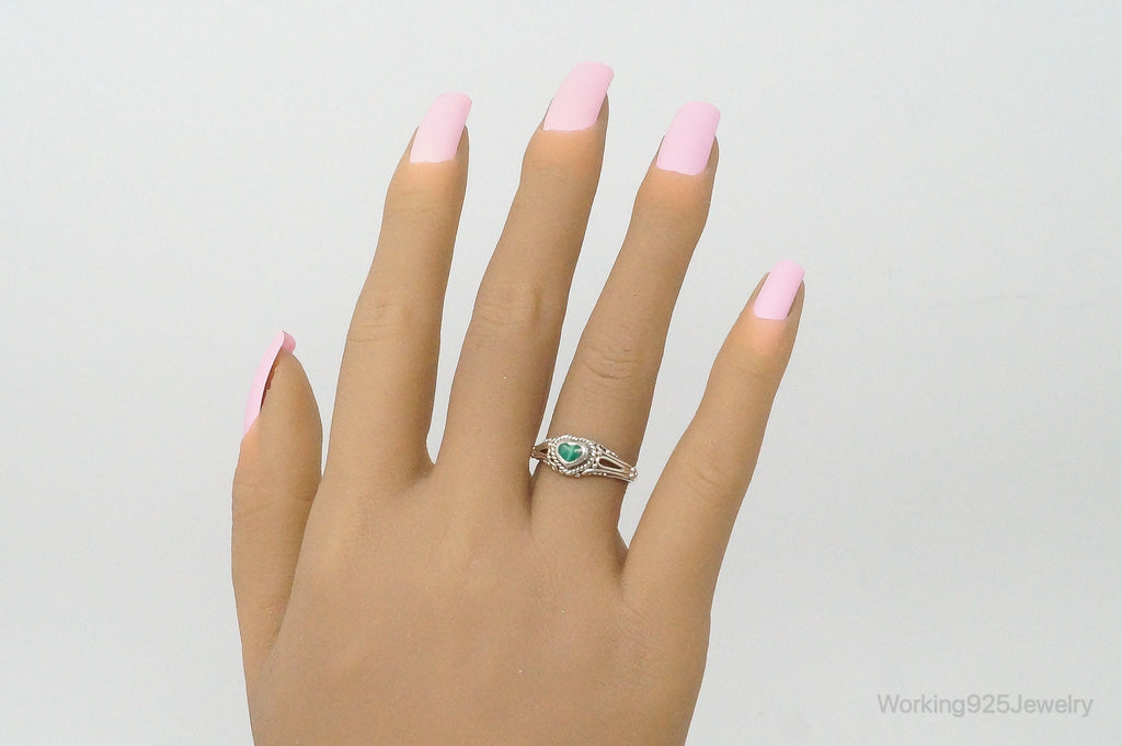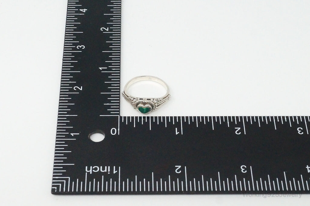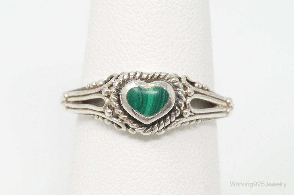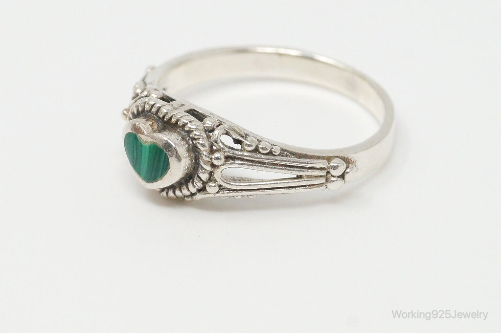 Vintage Malachite Heart Sterling Silver Ring Size 6