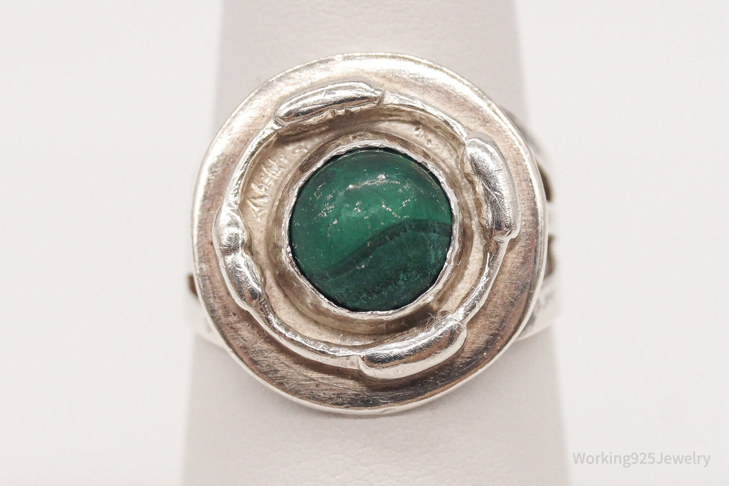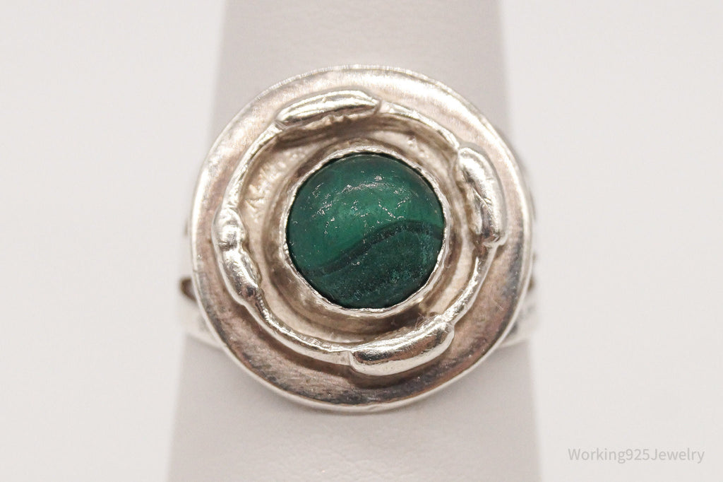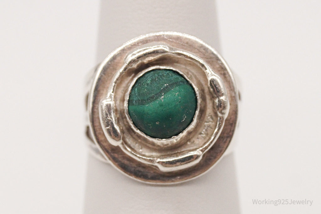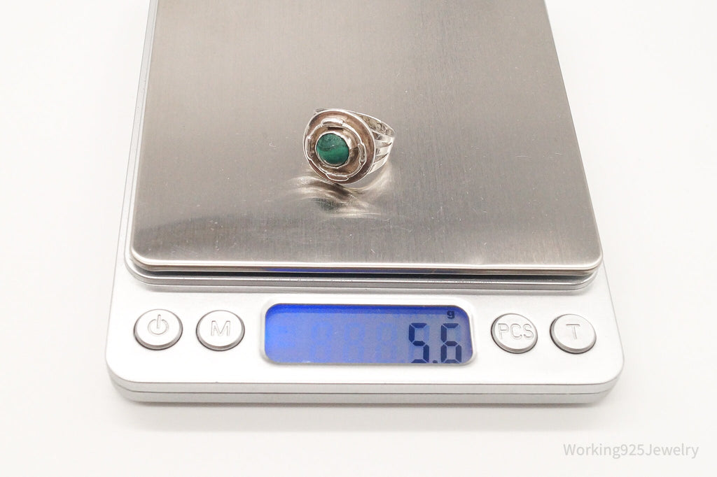 Vintage Malachite Sterling Silver Ring - Size 6.25