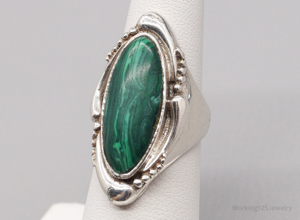 Vintage Malachite Sterling Silver Ring - Size 6.25