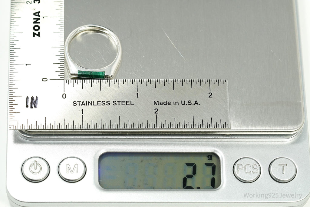 Vintage Malachite Sterling Silver Ring - Size 7