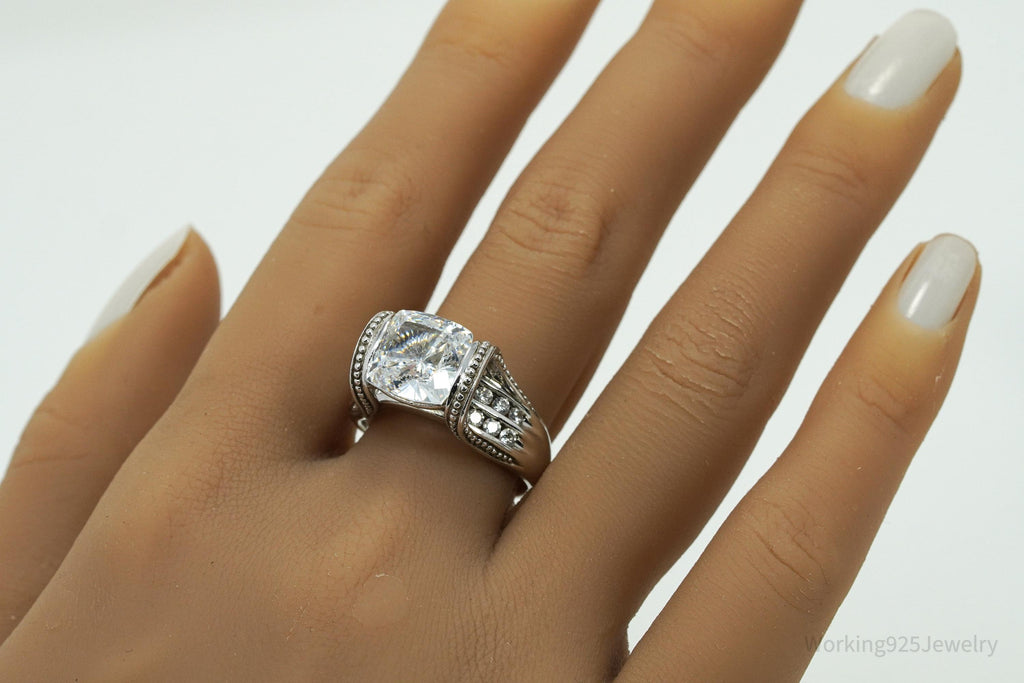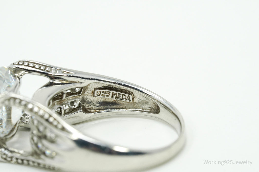 Vintage MEDA Large Cubic Zirconia Sterling Silver Ring Size 9