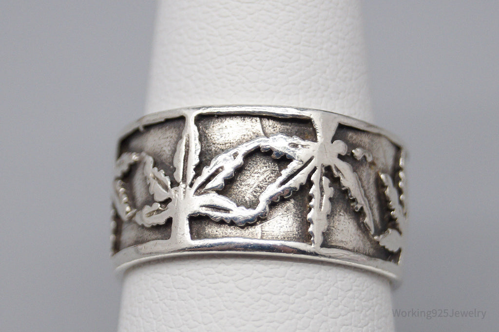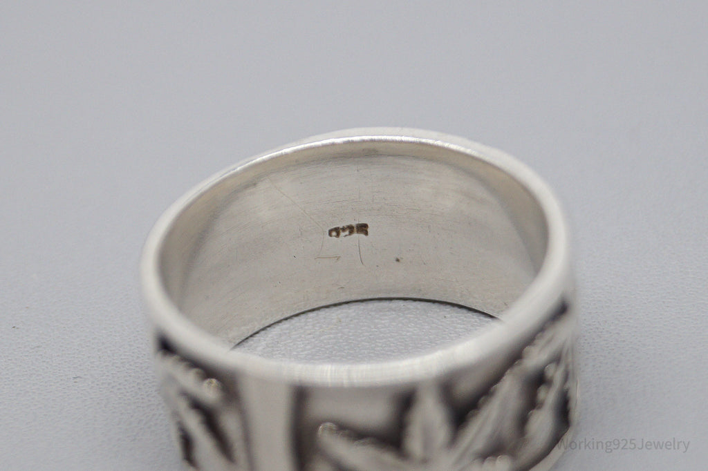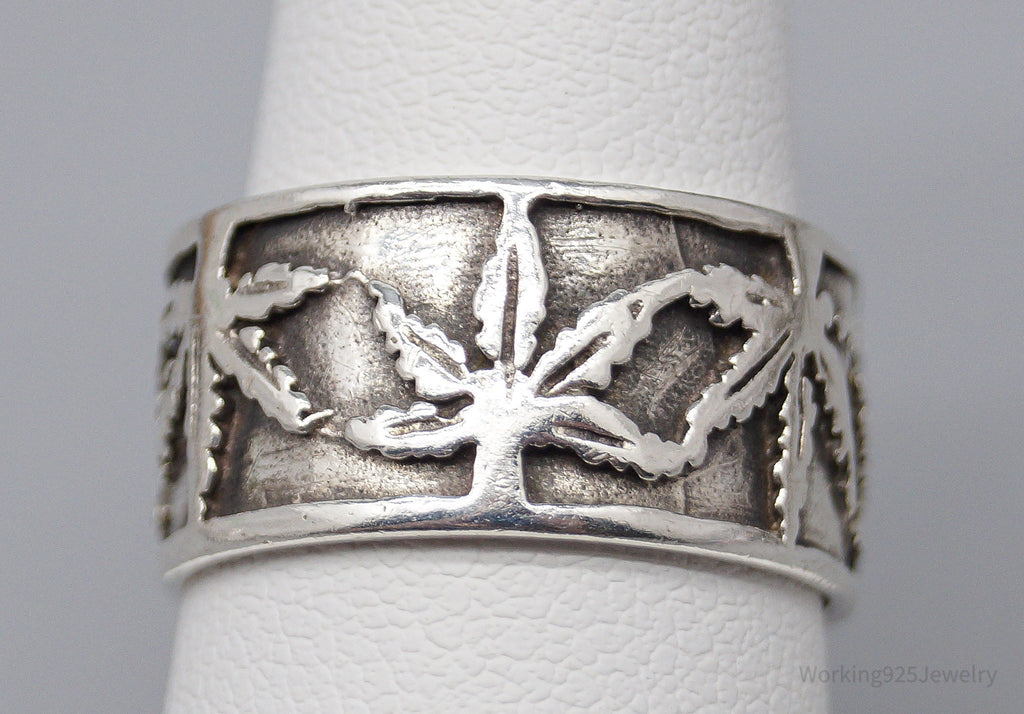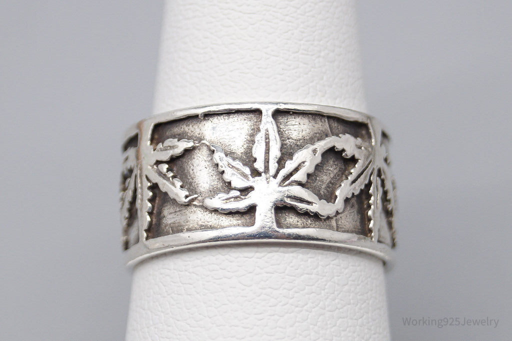 Vintage Medical Marijuana Pot Plant Weed Sterling Silver Ring - Size 7.5