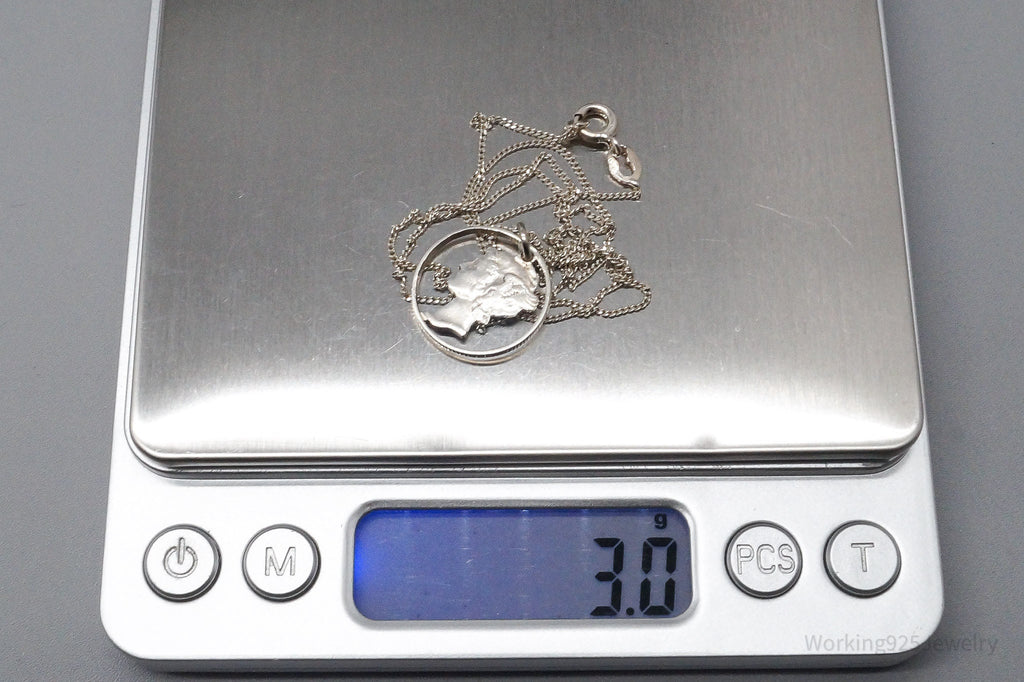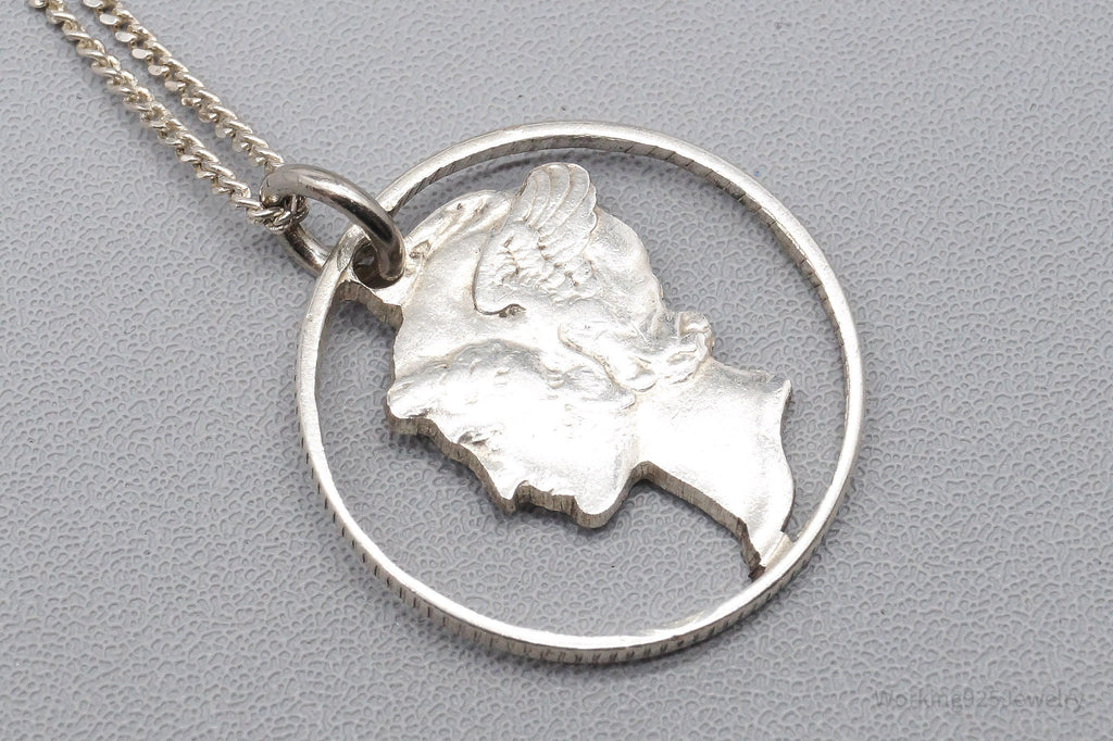Vintage Mercury Dime Coin Cut Out Silver Pendant Sterling Silver Necklace 18"