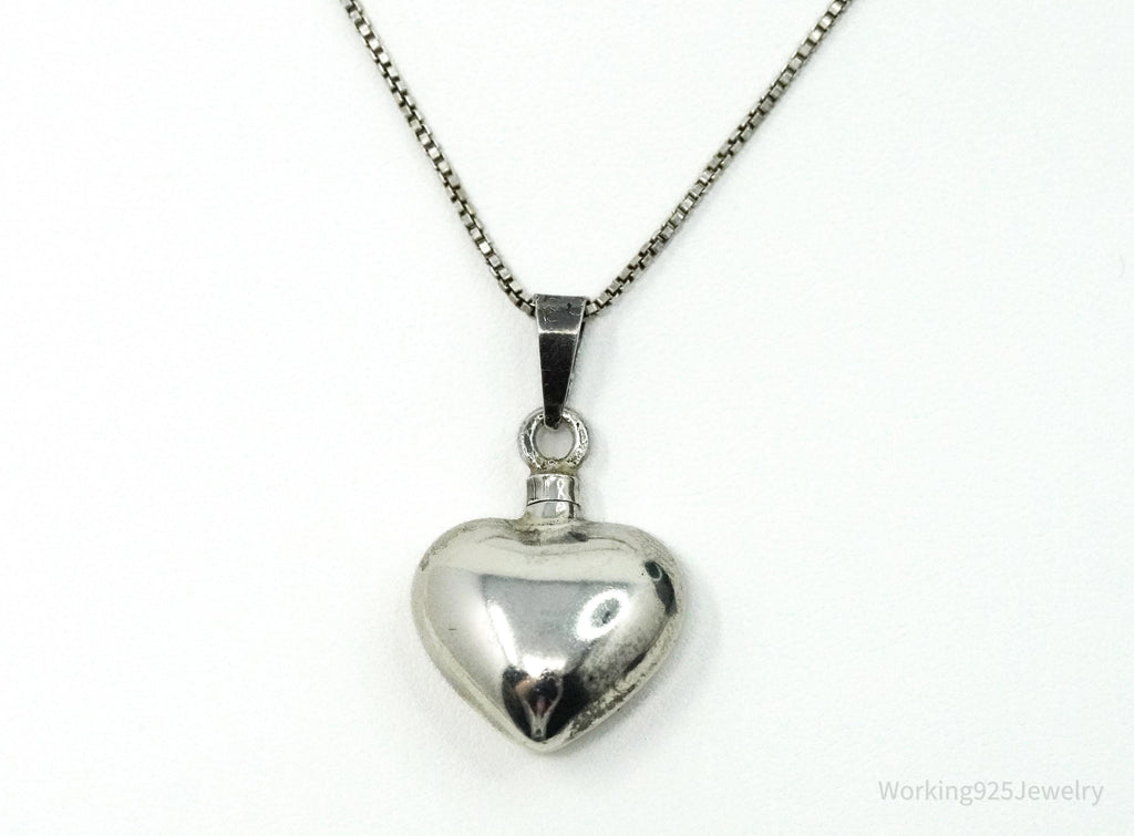 Vintage Mexican Heart Perfume Poison Bottle Sterling Silver Chain Necklace 20"