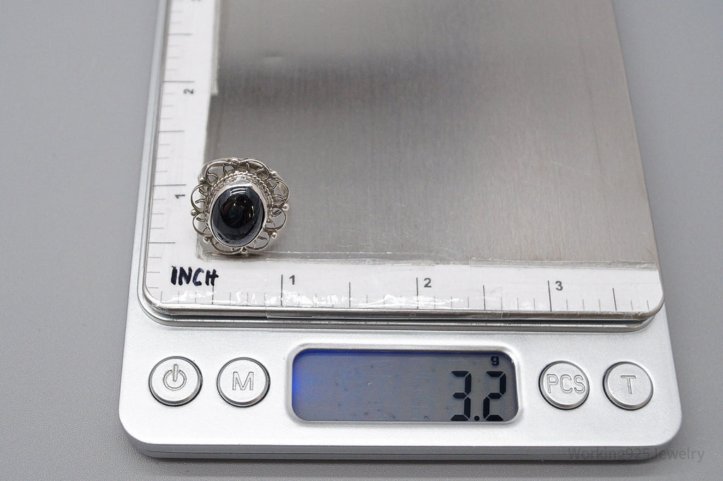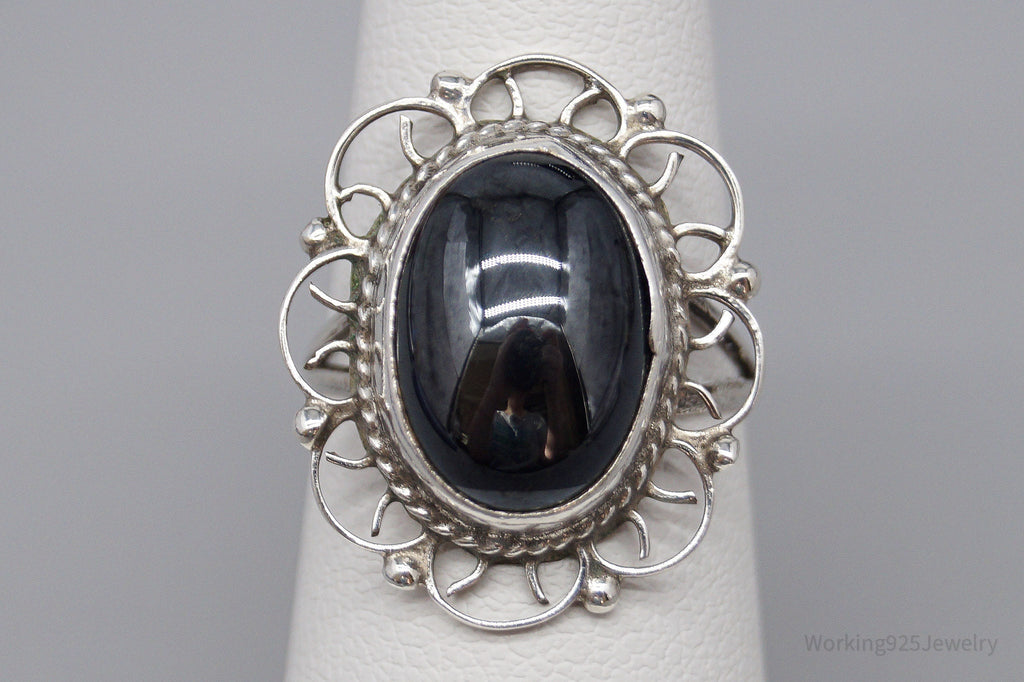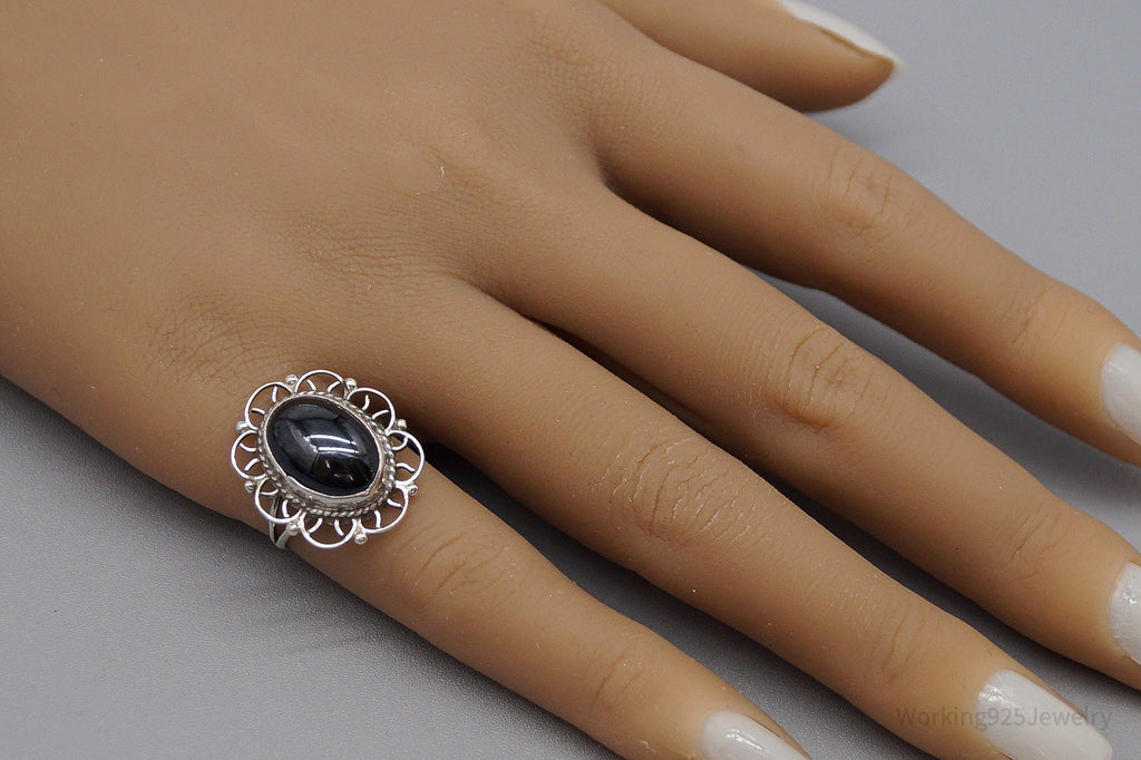 Vintage Mexico Black Stone Sterling Silver Ring - Size 5.75