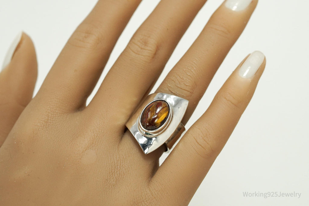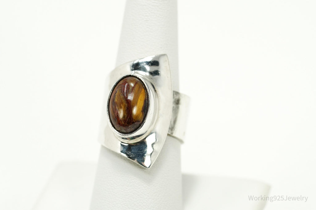 Vintage Mexico Modernist Dominique Dinouart Brown Stone Sterling Silver Ring - Size 8