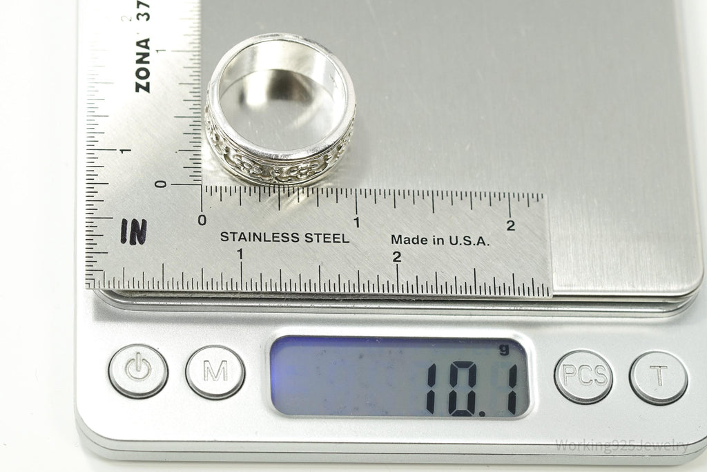 Vintage Mexico Flowers Pattern Sterling Silver Band Ring - Size 11.5