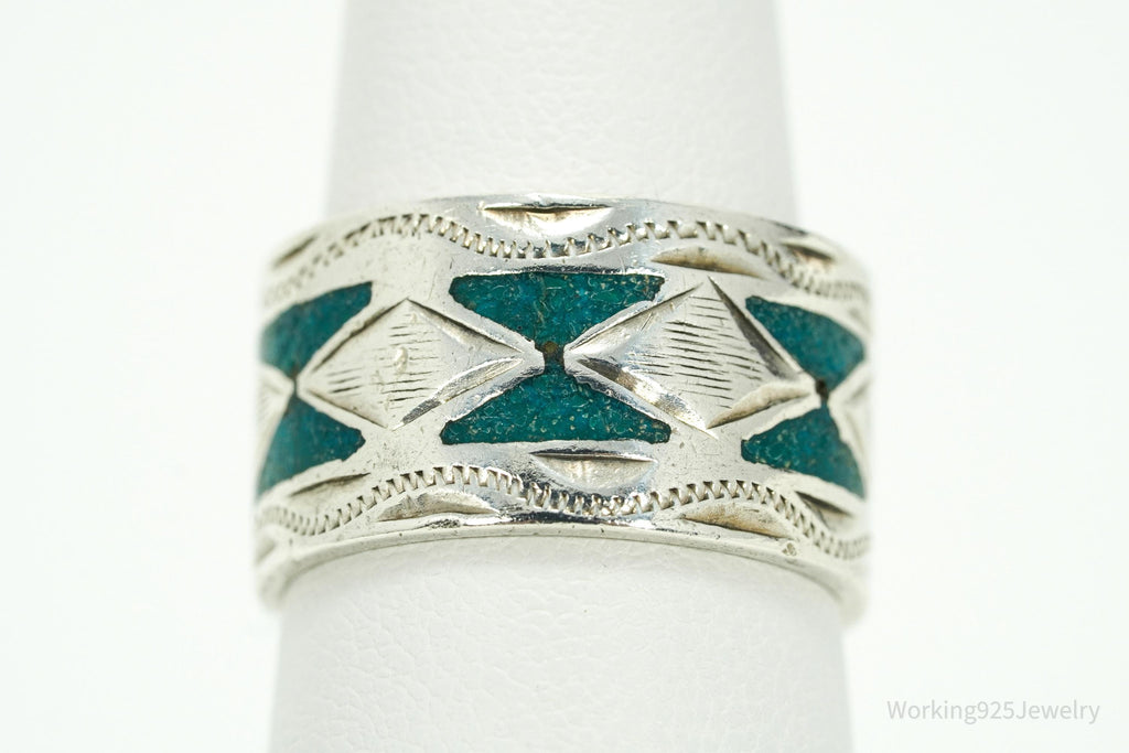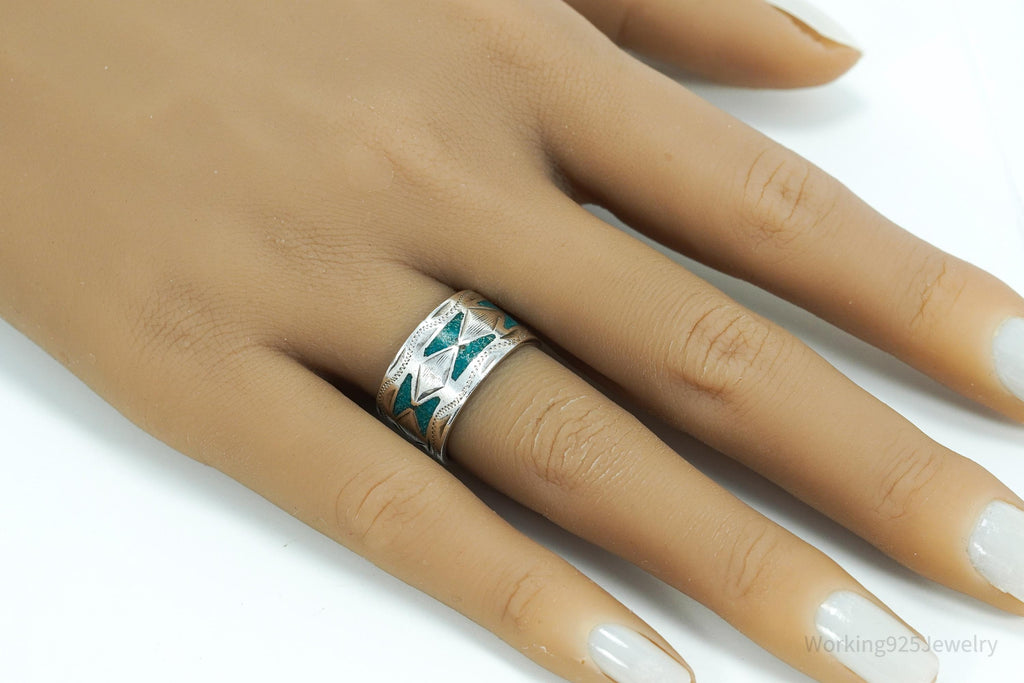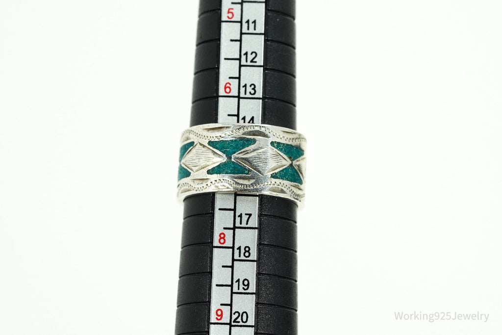 Vintage Mexico JGM Turquoise Inlay Sterling Silver Ring - Size 7.25