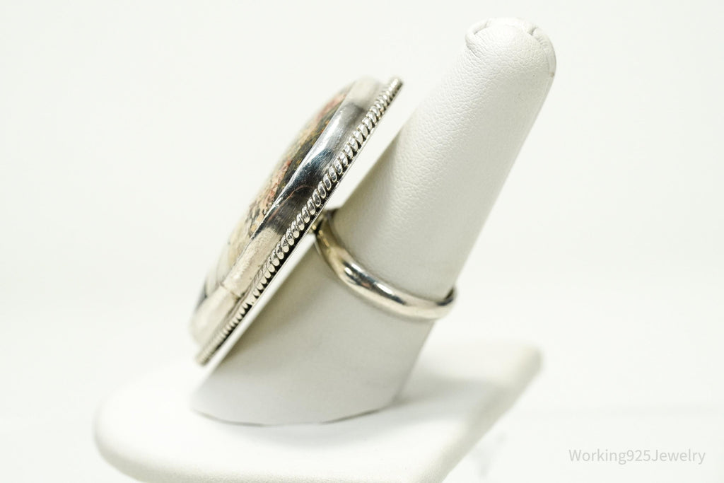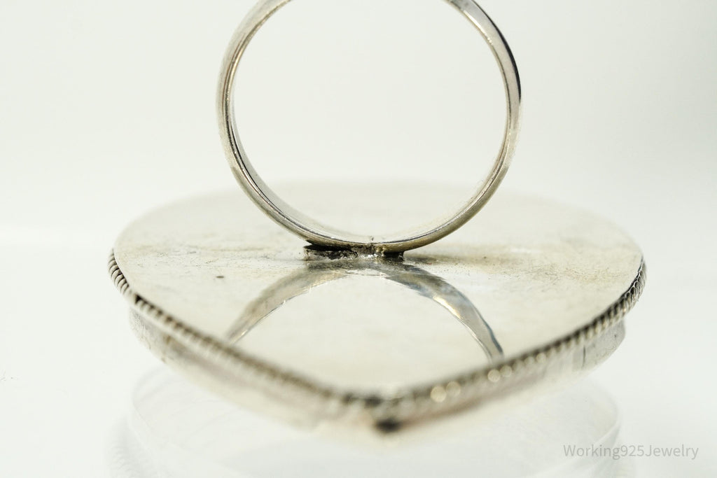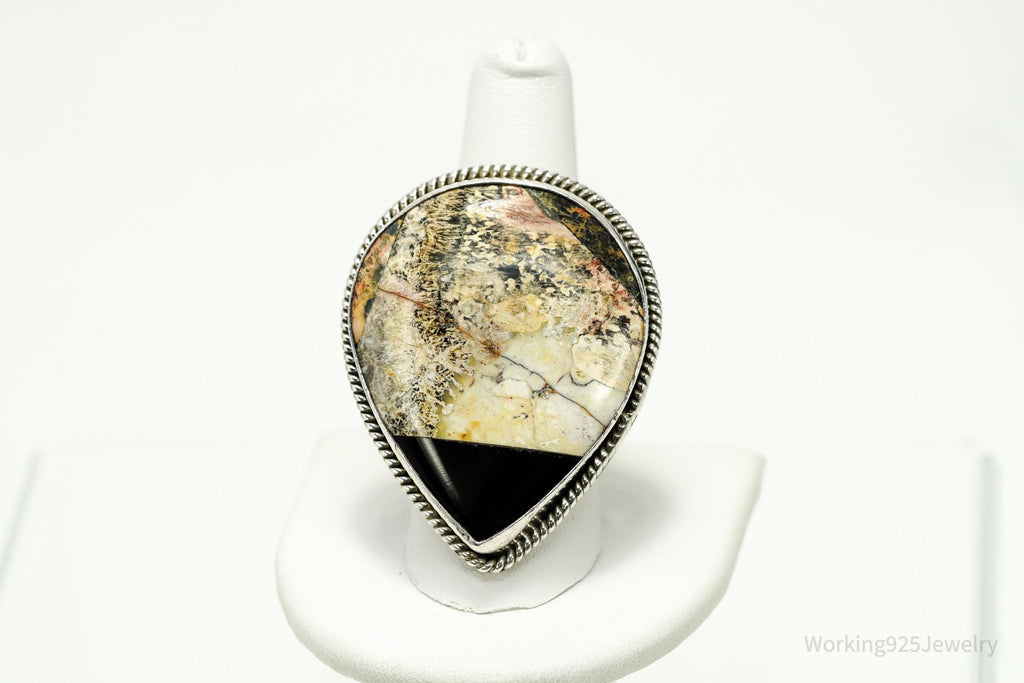 Vintage Mexico Modernist HOB Massive Agate & Black Onyx Inlay Sterling Silver Ring - Size 8