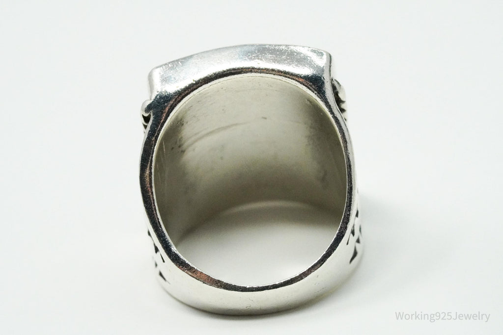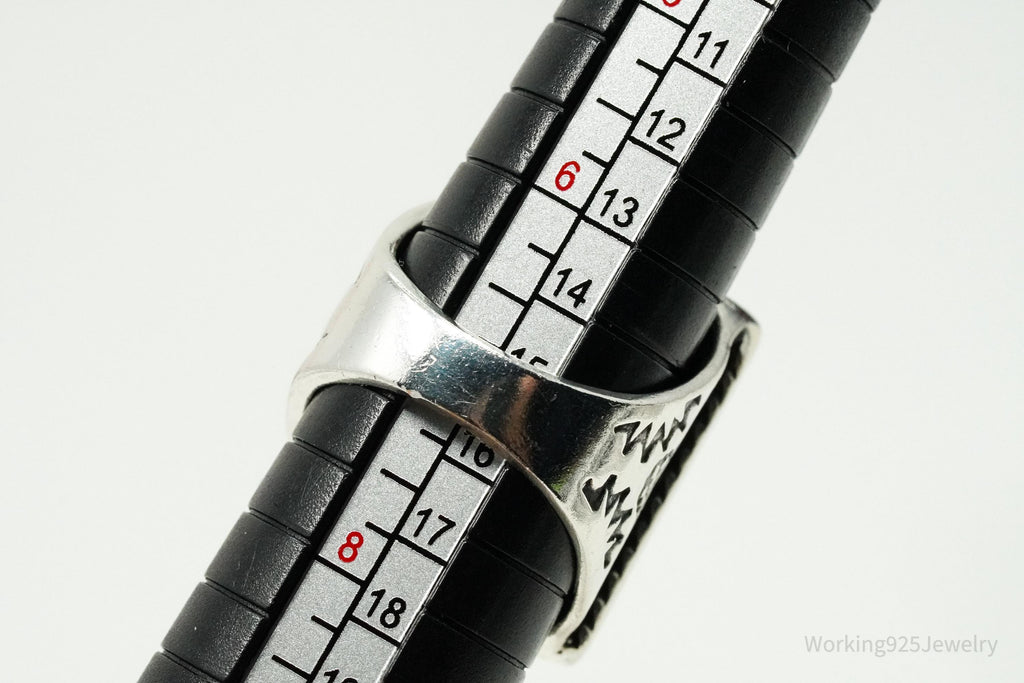 Vintage Native American Turquoise Inlay Unsigned Silver Ring - Size 7