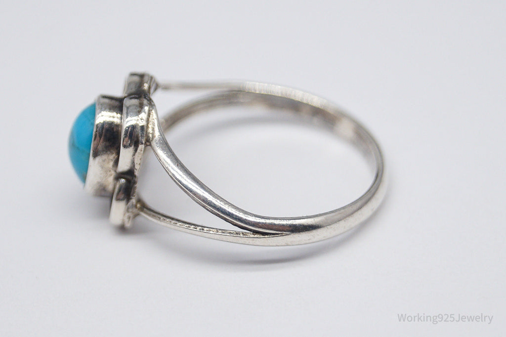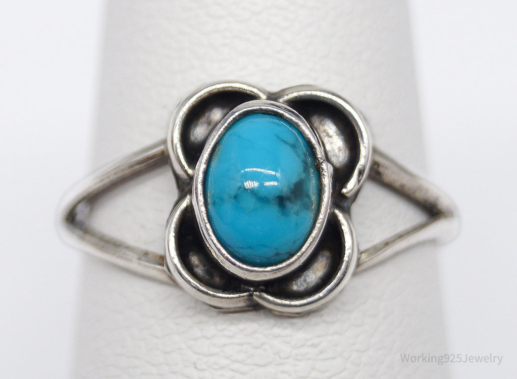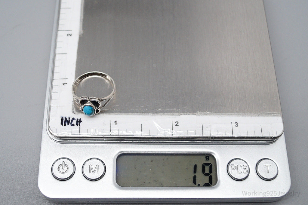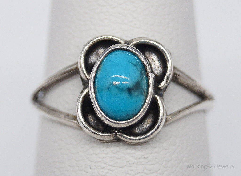 Vintage Native American Turquoise Unsigned Silver Ring - Size 6