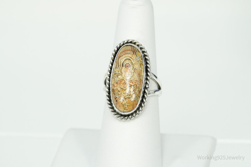 Vintage Native American Unsigned Crazy Lace Agate Silver Ring - Size 7