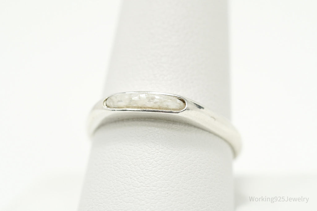 Vintage Native Carolyn Pollack Crushed Mother Of Pearl Inlay Sterling Silver Ring - Size 10