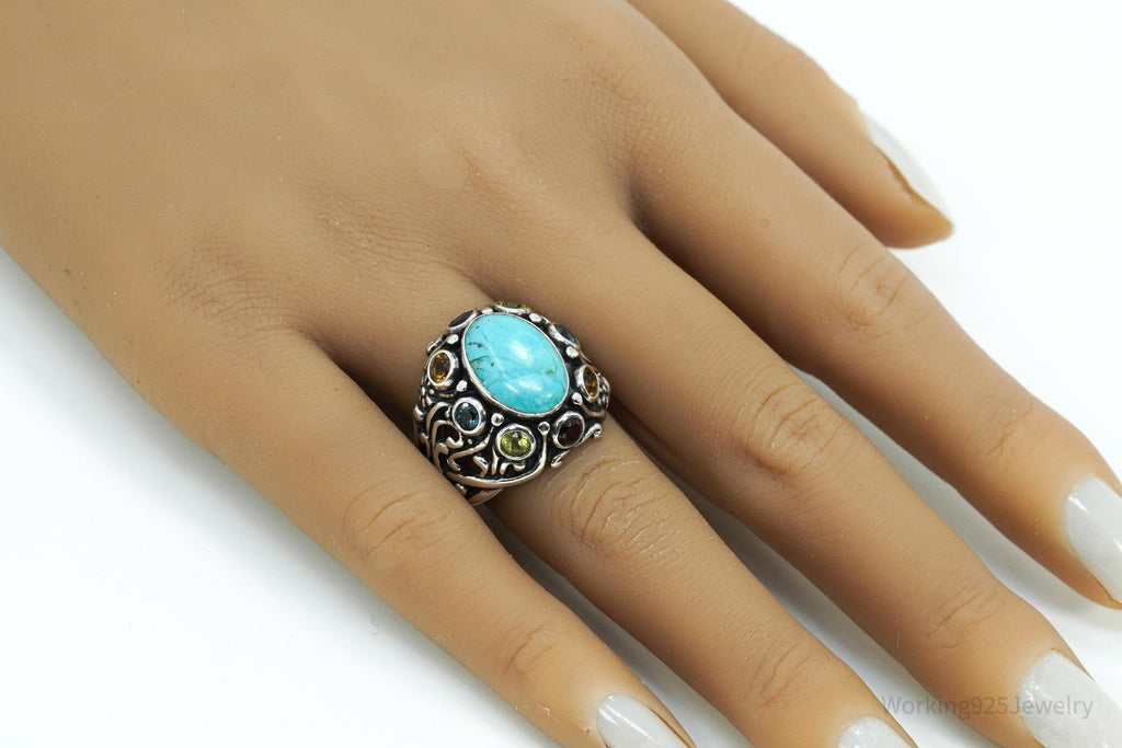 Vintage Native Carolyn Pollack Multi Gemstone Sterling Silver Ring - Size 8