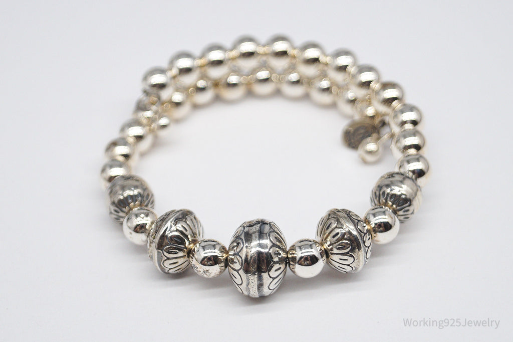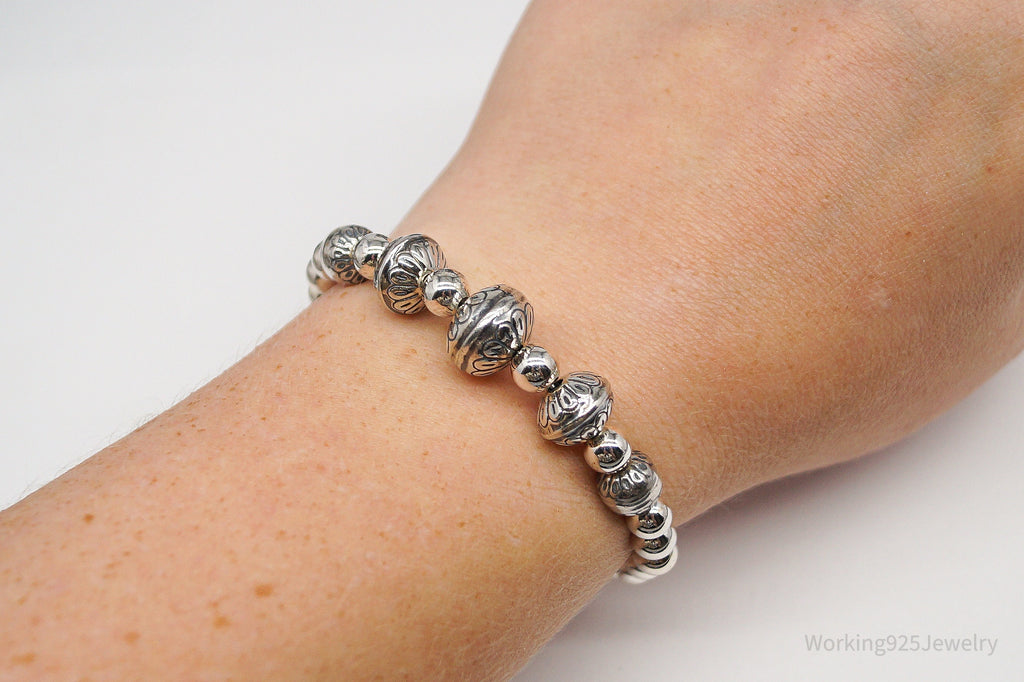 Vintage Native Carolyn Pollack Sterling Silver Adjustable Bead Bracelet 5"-7"