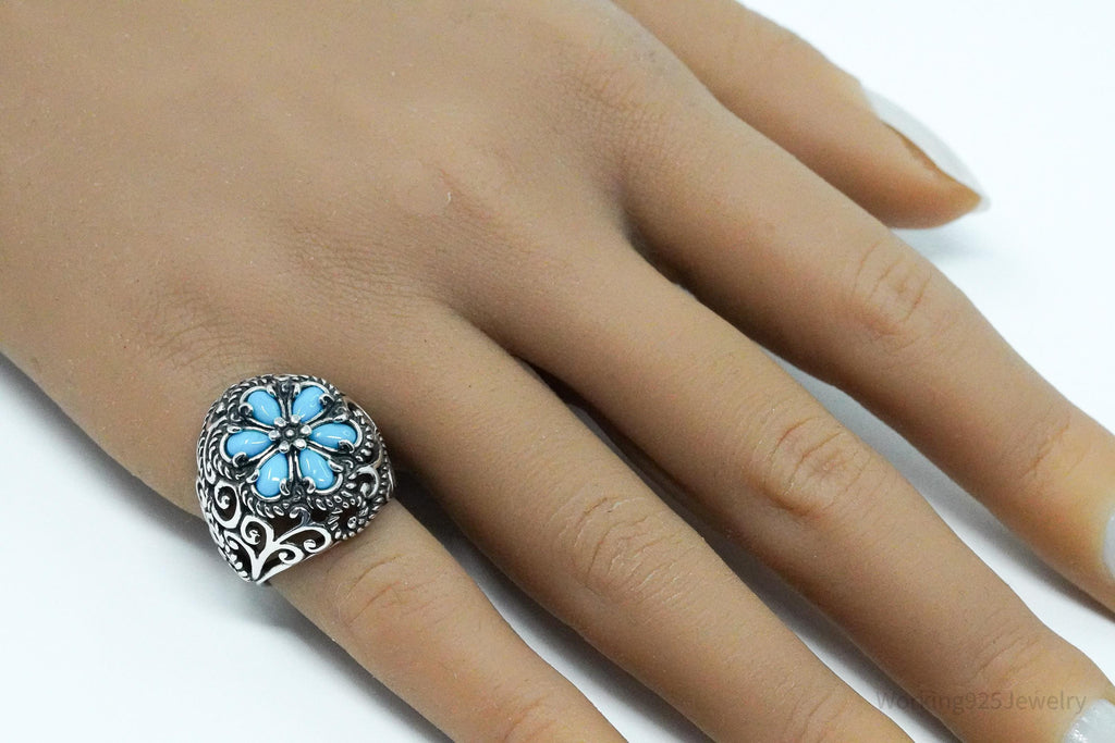 Vintage Native Designer Carolyn Pollack Turquoise Sterling Silver Ring - Size 5.25