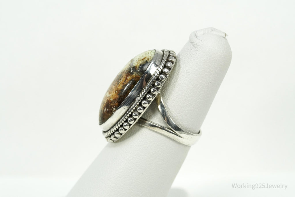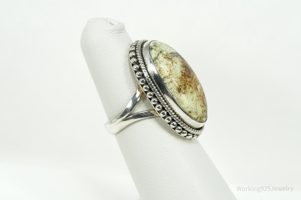 Vintage Native Large Gaspeite Sterling Silver Ring - Size 5.5