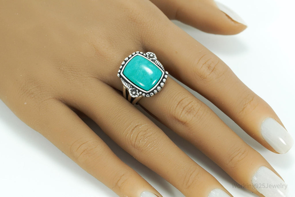 Vintage Native WJ Waldeck Johnson Turquoise Sterling Silver Ring Size 9