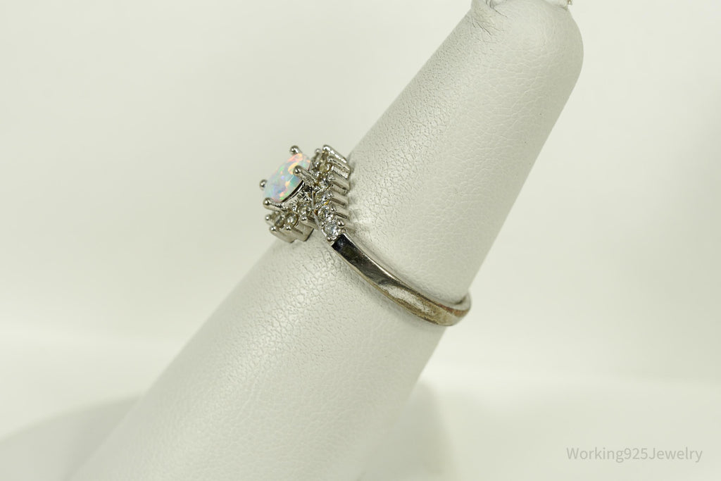 Vintage Opal & Cubic Zirconia Sterling Silver Plated Ring - Size 6