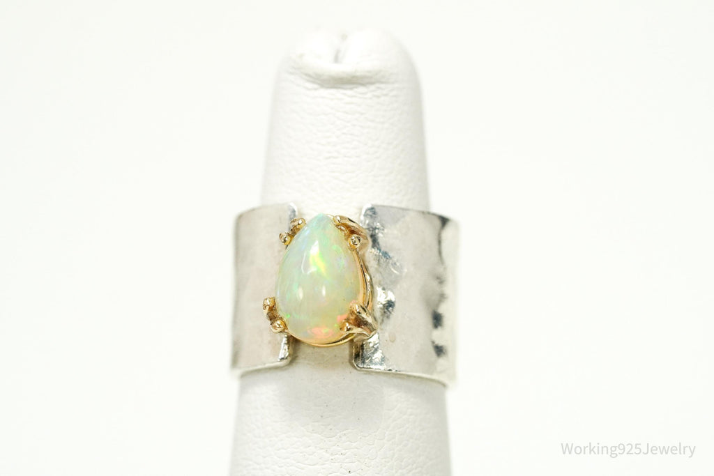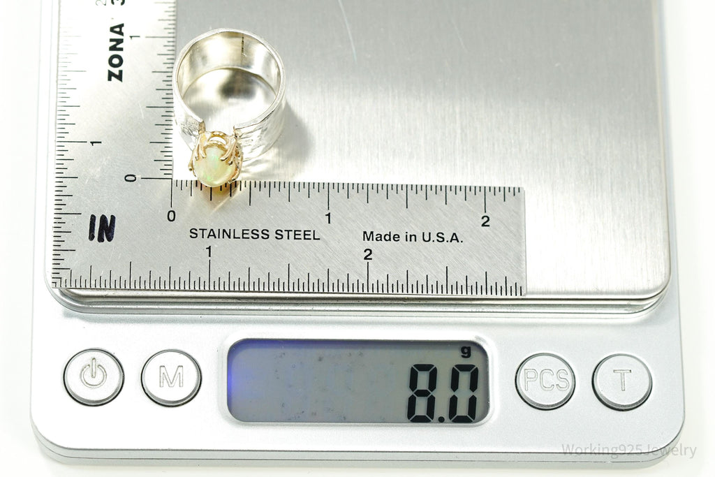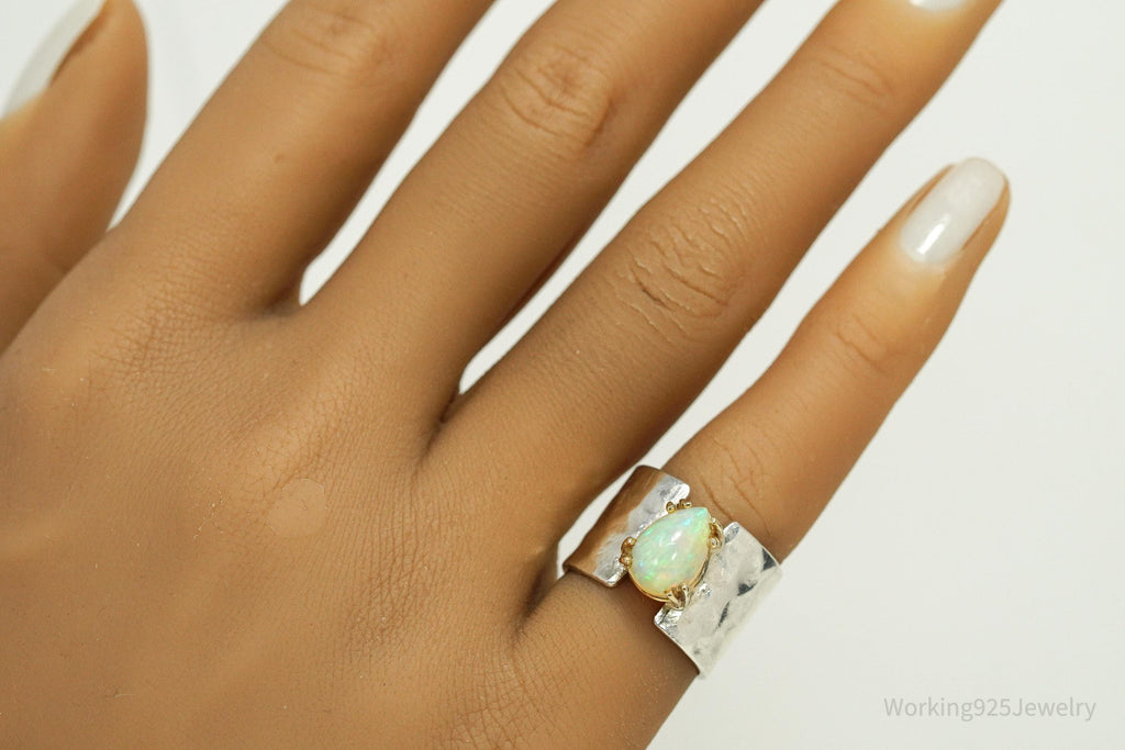 Vintage Opal Hammered Style Band Gold Vermeil Silver Ring - Size 5.5